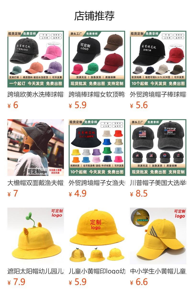2、印刷价格 10顶起做,具体图案发客服,效果图确定