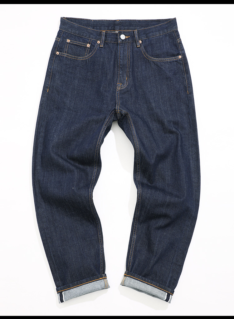 [셀비지 데님] 가을 신상 다크블루 루즈 트렌디 캐주얼 하이엔드 청바지 작은 발 남성용 9부 팬츠