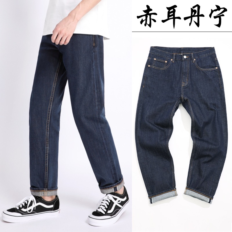 [셀비지 데님] 가을 신상 다크블루 루즈 트렌디 캐주얼 하이엔드 청바지 작은 발 남성용 9부 팬츠스토어 가기