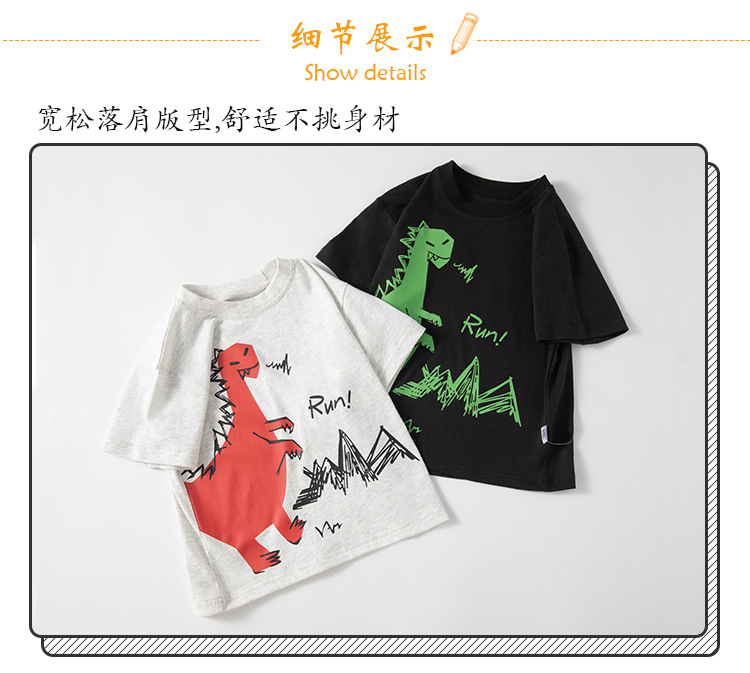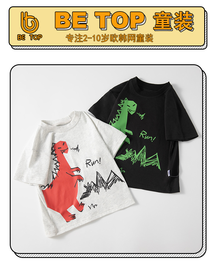 Betop 한국식 아동복 국경 간 공급 공룡 어린이 반팔 티셔츠 여름 아기 옷 도매 1 위탁스토어 가기