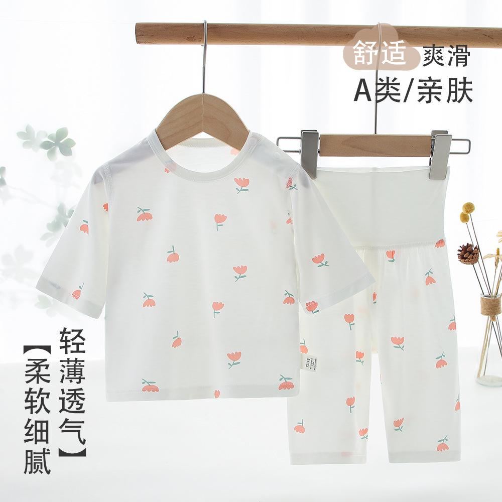 유아용 반팔 아동복, A급 7부소매 에어컨 의류, 배 보호 팬츠, 유아용 가정복, 잠옷, A급 안전 등급