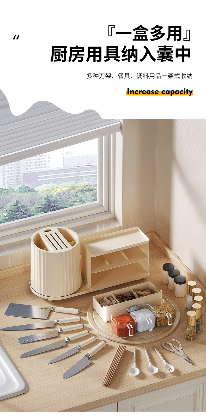 주방 다기능 회전 칼 저장 랙 젓가락 홀더 분할 향긋한 향신료 저장 상자 오일 흄 식초 보관스토어 가기
