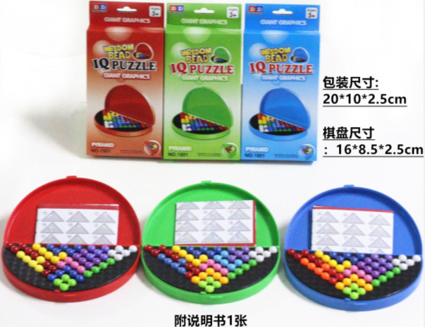 配件:棋盘盒子1个、形状各异的圆珠串12个、英文说明书