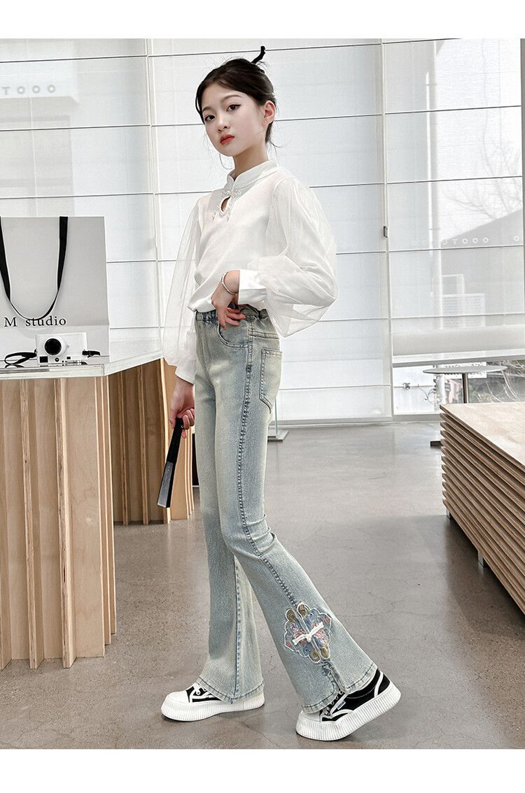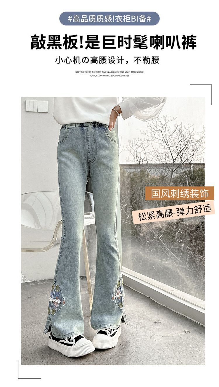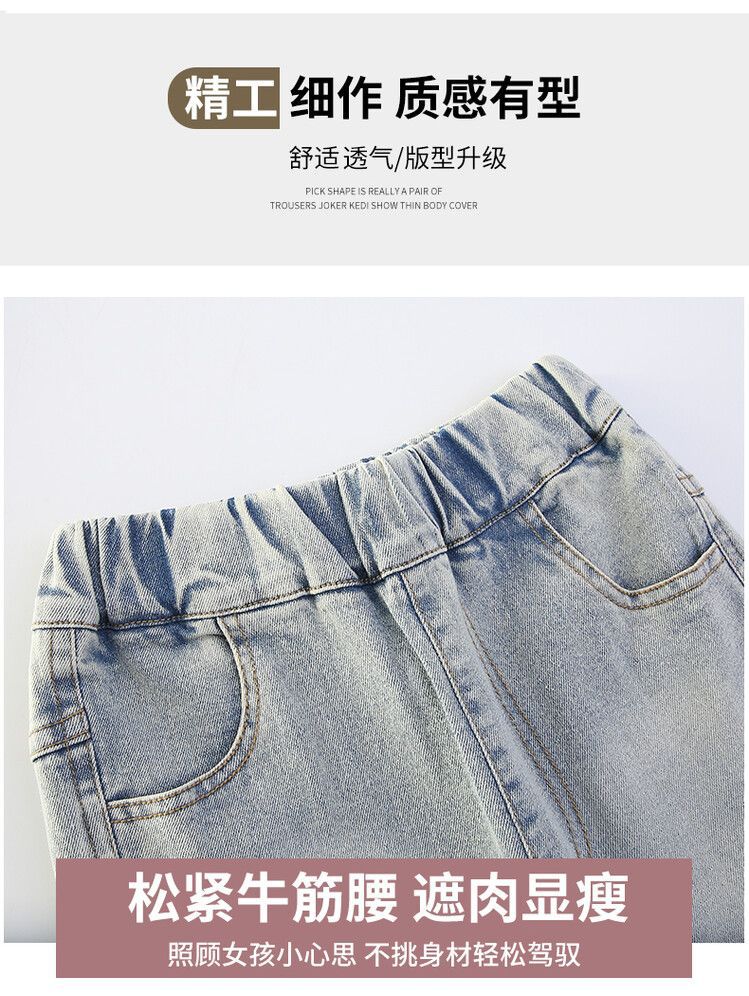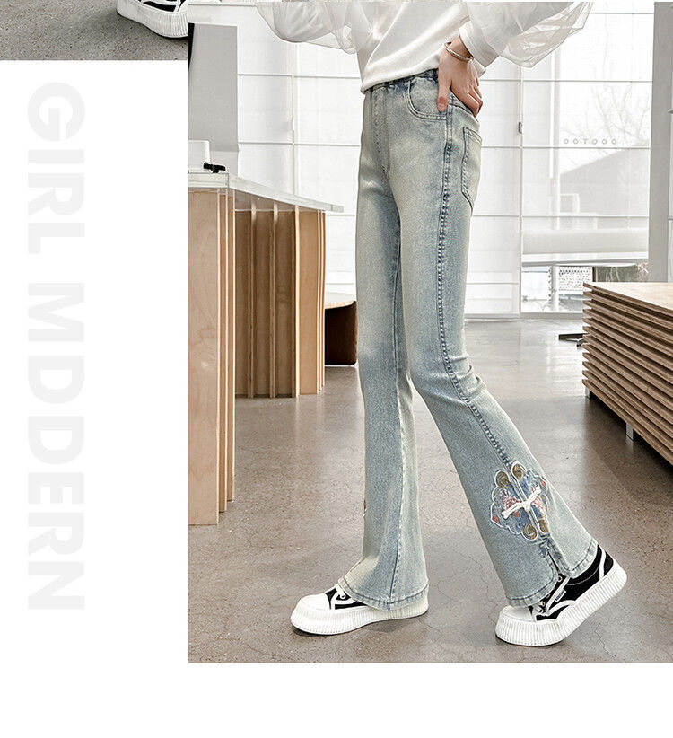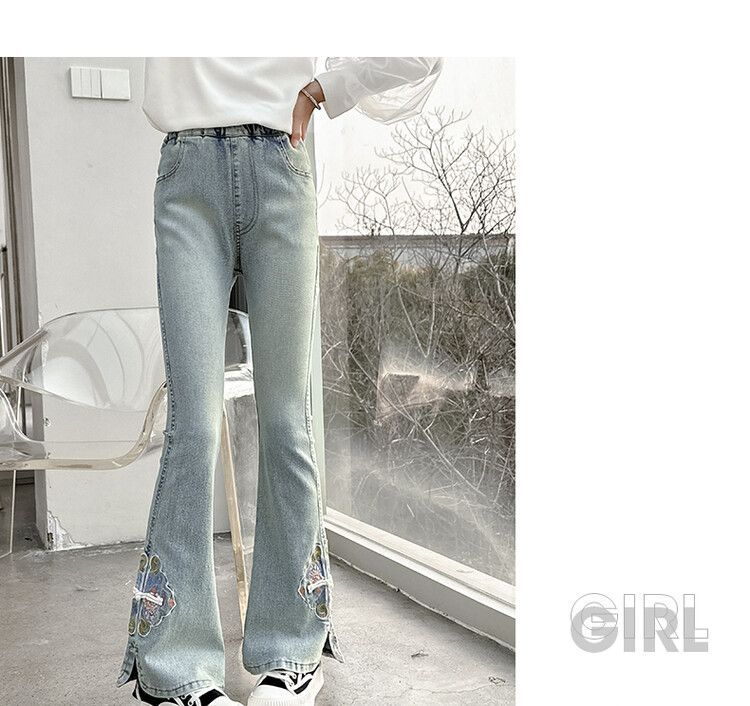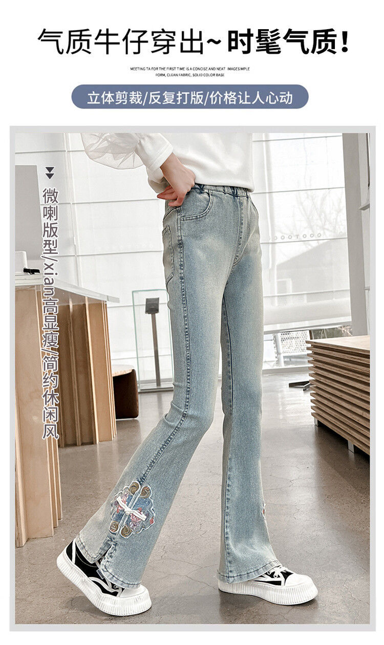 소녀의 봄과 가을 청바지 봄 서양식 2024 새로운 스타일 소녀 유행 바지 봄 착용 어린이 플래 바지스토어 가기