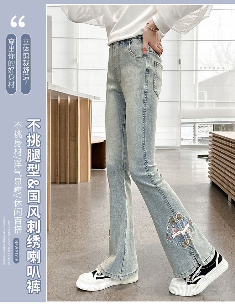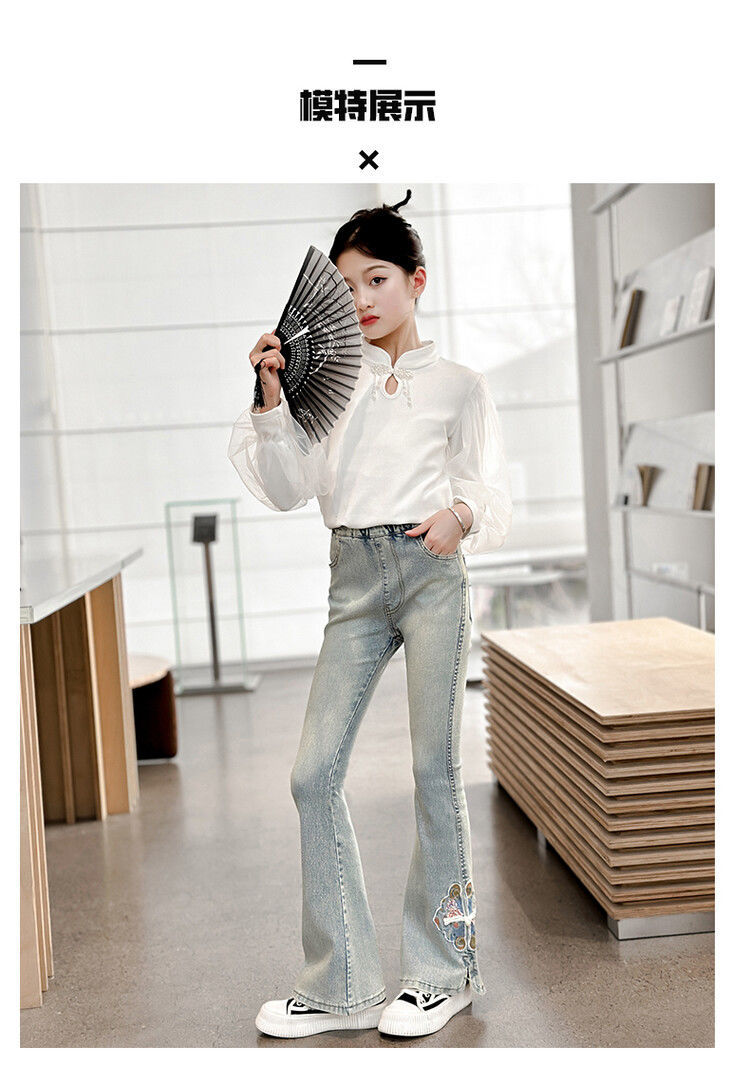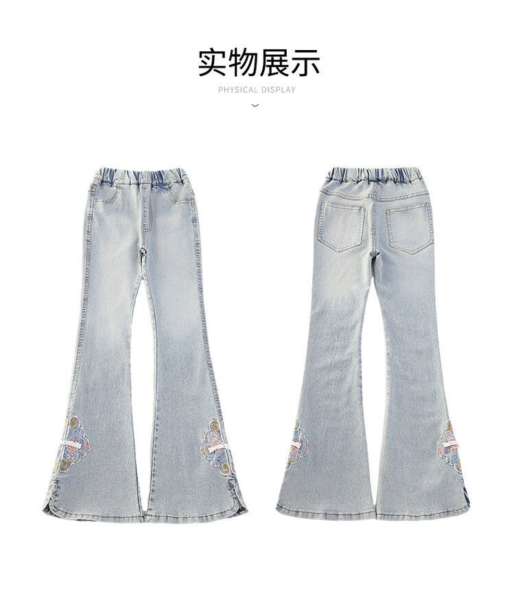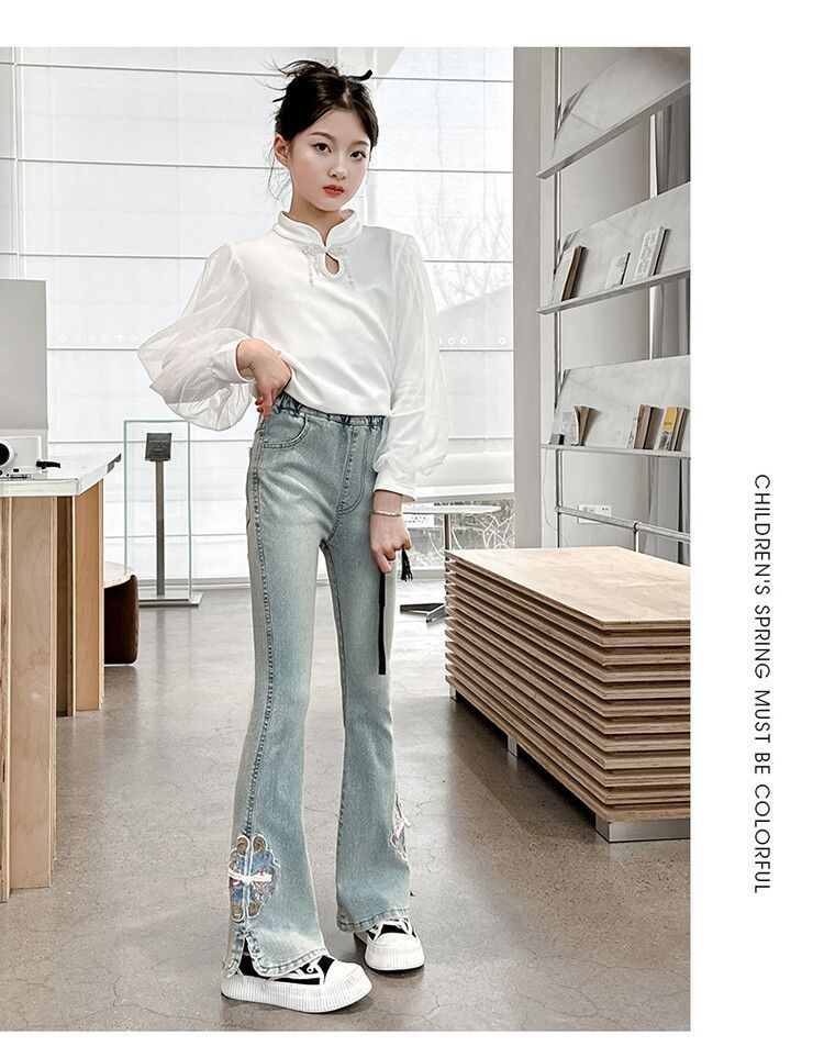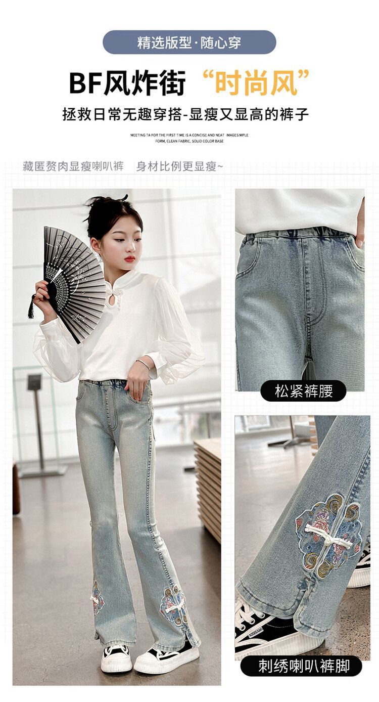 소녀의 봄과 가을 청바지 봄 서양식 2024 새로운 스타일 소녀 유행 바지 봄 착용 어린이 플래 바지스토어 가기