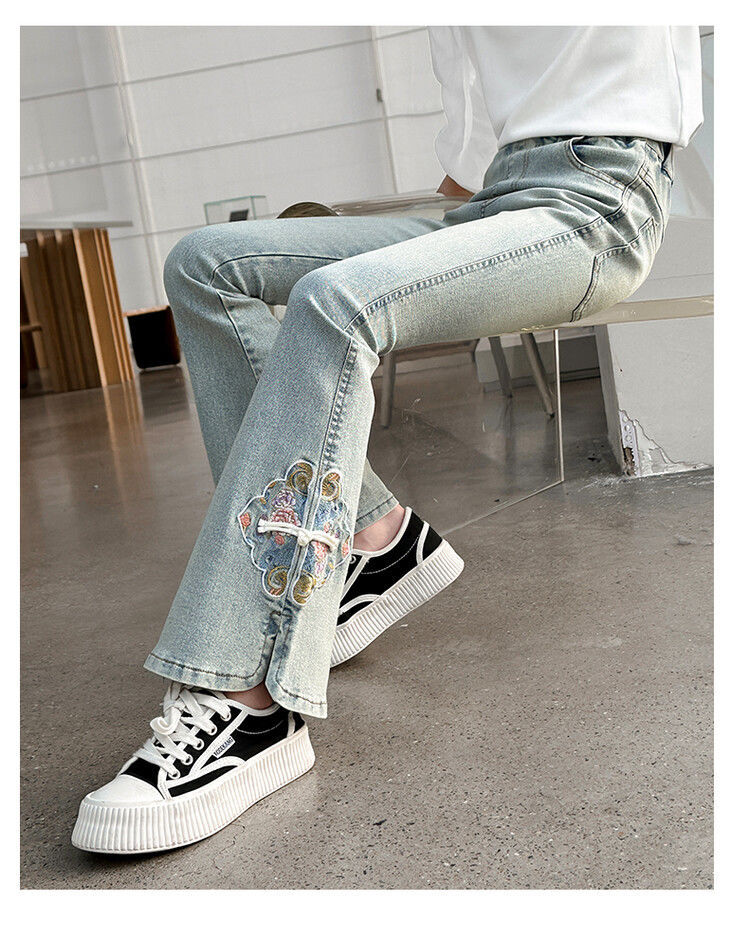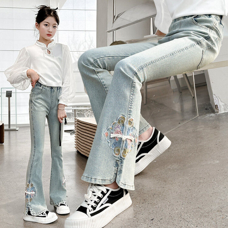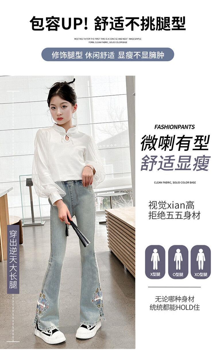 소녀의 봄과 가을 청바지 봄 서양식 2024 새로운 스타일 소녀 유행 바지 봄 착용 어린이 플래 바지