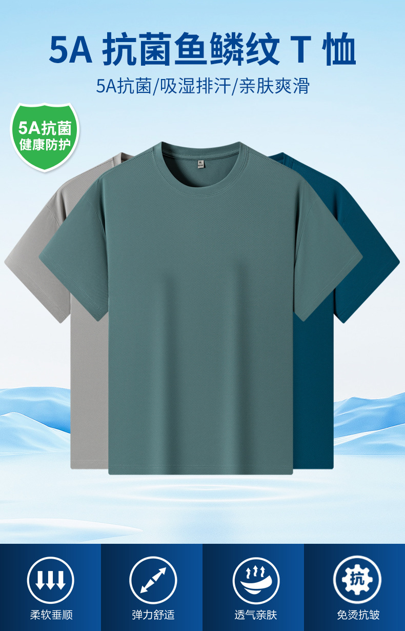 【5A 항균 물고기 비늘 무늬】여름용 티셔츠 남성용 물고기 비늘 무늬 통기성 부드러운 단색 속건 기업문화 셔츠스토어 가기