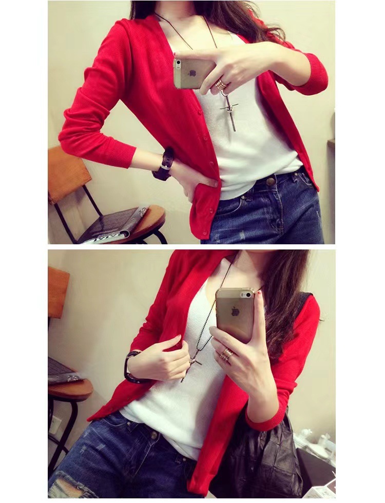재고 국경 간 공급 여성 V-목 봄과 가을 니트 카디건 여성의 단색 소매 긴 V-목 외부 착용 얇은 스웨터 플러스 사이즈