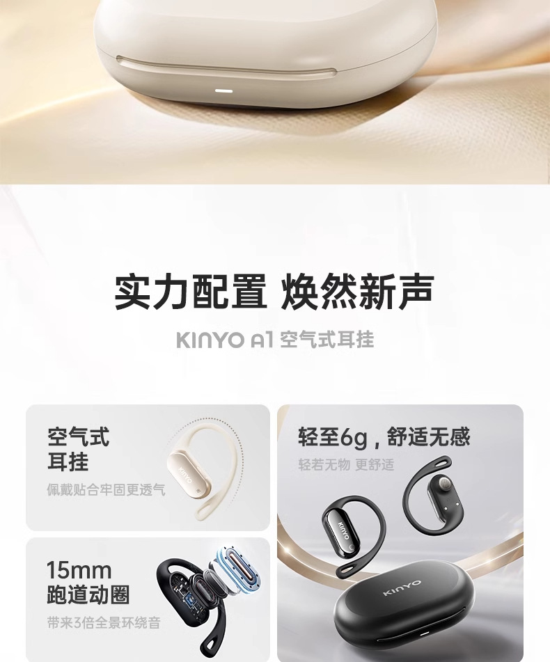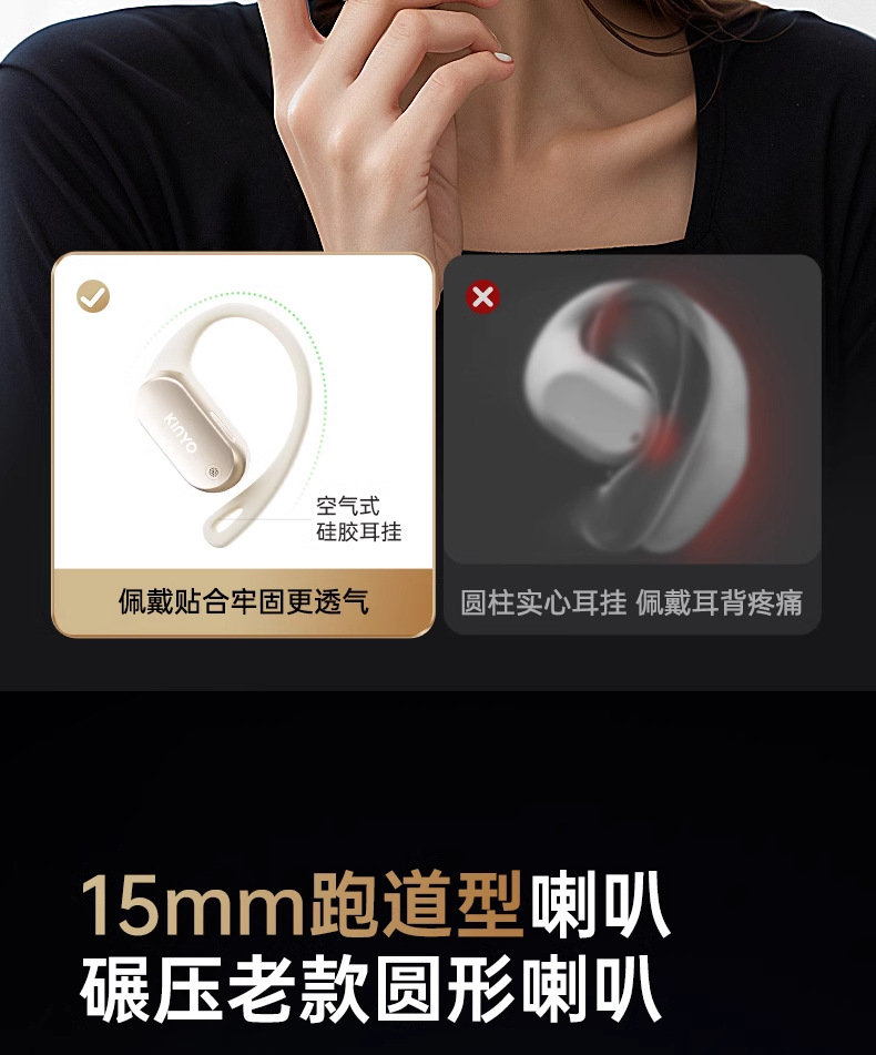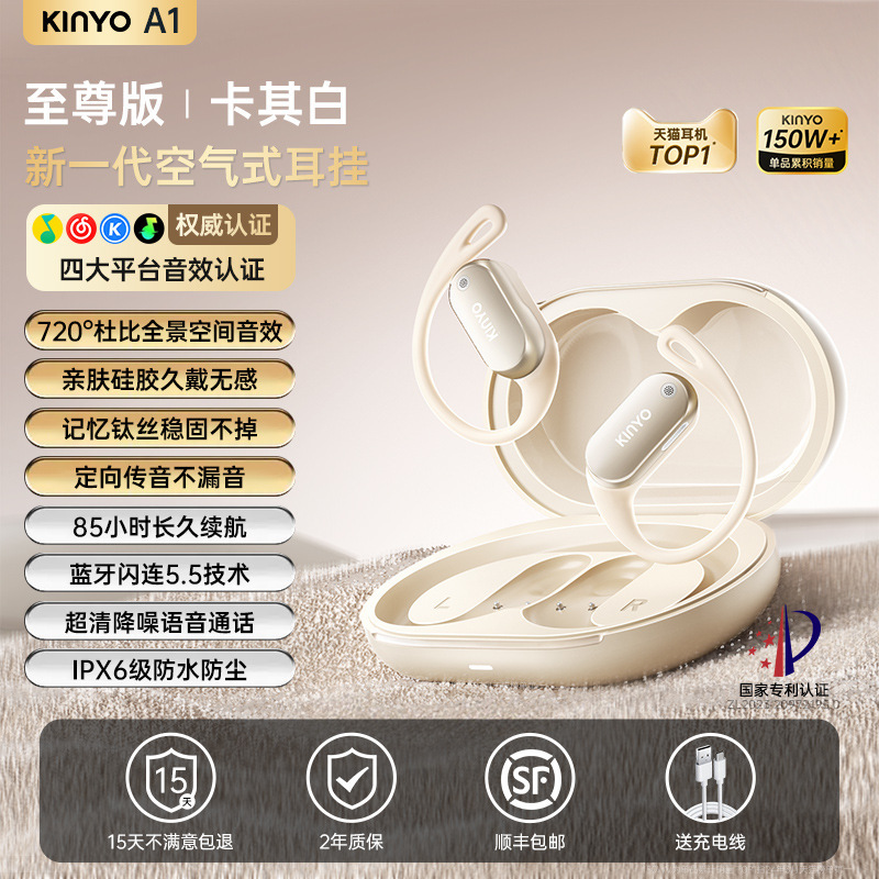 진윤 A1 블루투스 이어폰 무선 귀걸이형 얇고 휴대하기 쉬운 초장시간 배터리 수명 공기전도 오픈형 이어폰