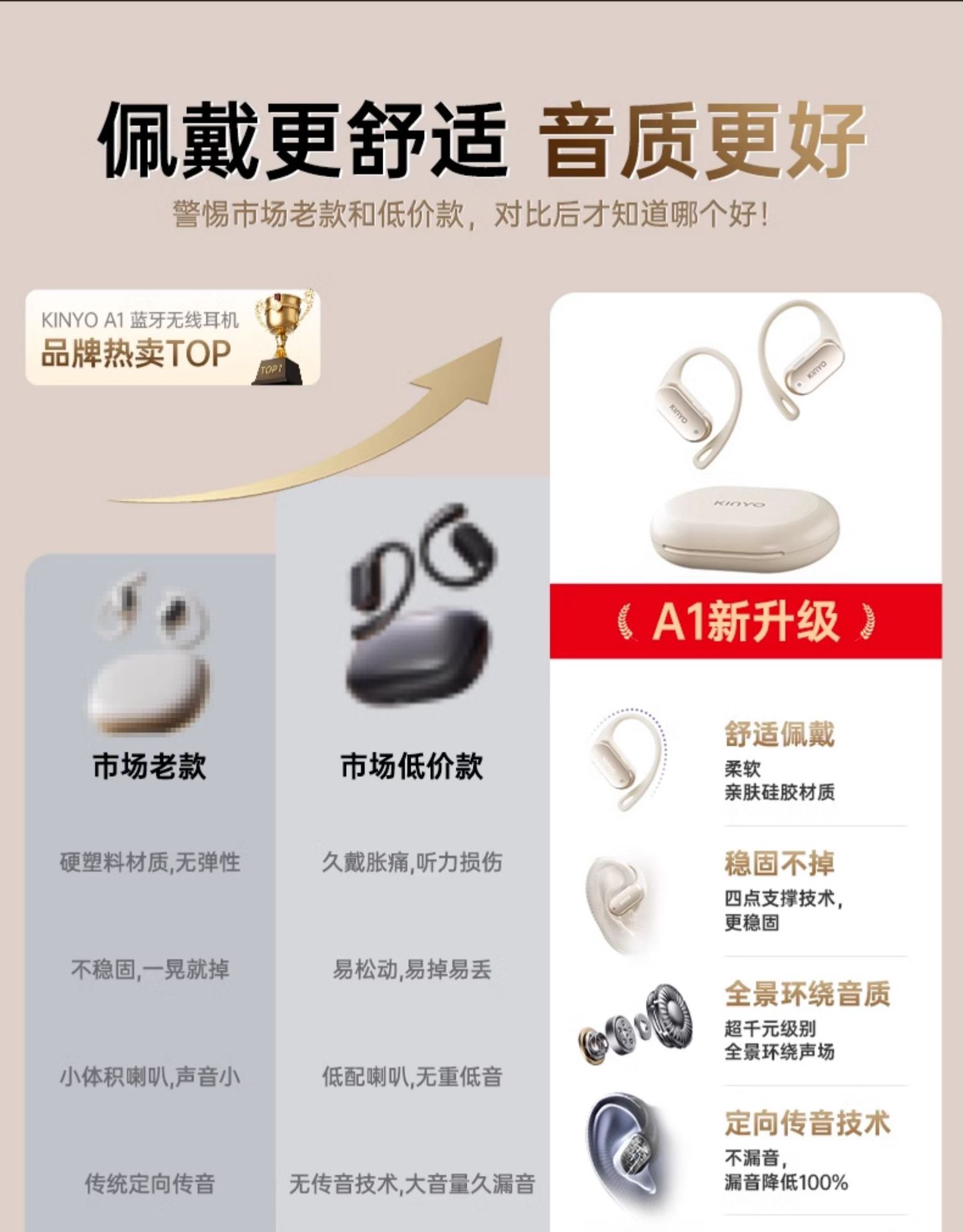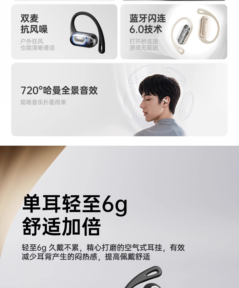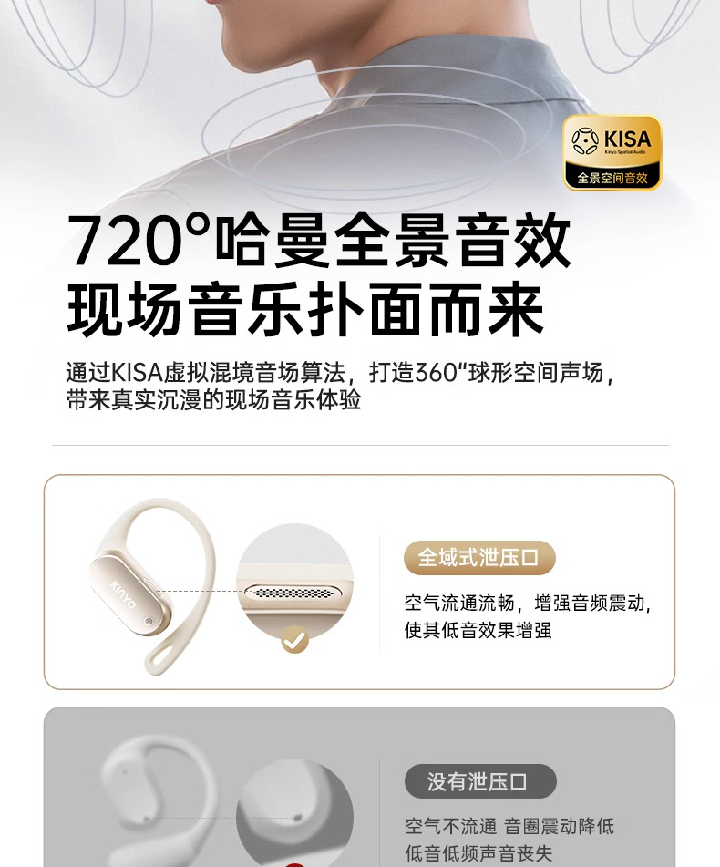 진윤 A1 블루투스 이어폰 무선 귀걸이형 얇고 휴대하기 쉬운 초장시간 배터리 수명 공기전도 오픈형 이어폰스토어 가기