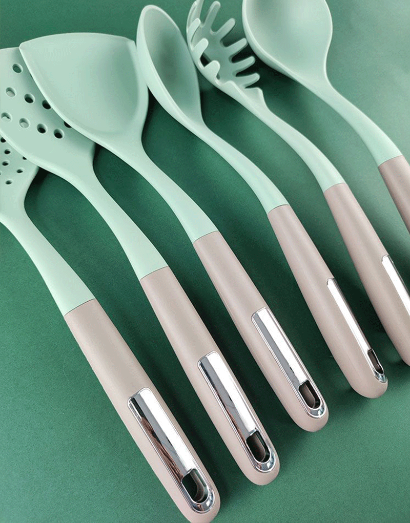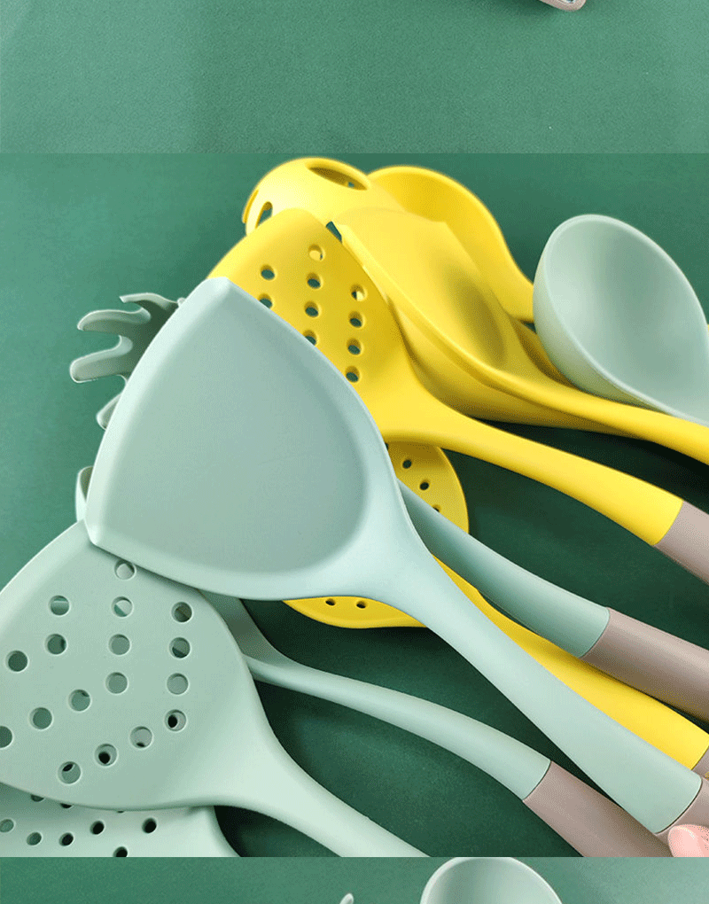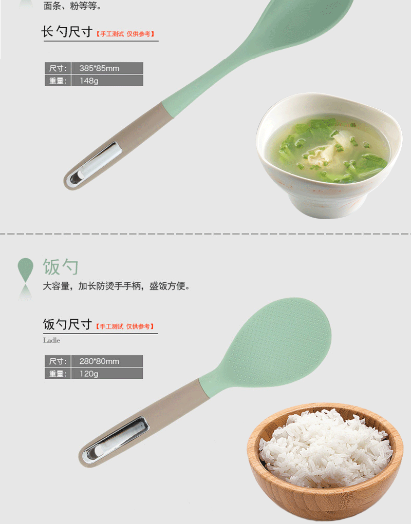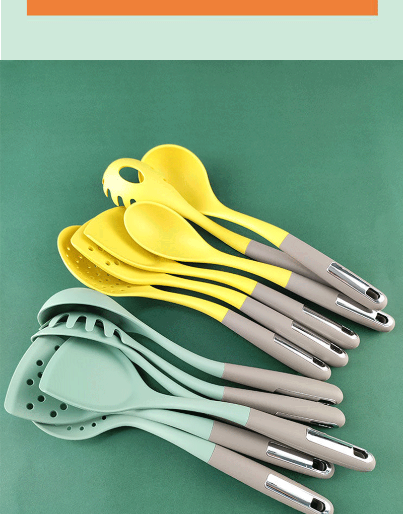 가정용 2 색 실리콘 조리기구 실리콘 스쿠 트 수프 스푼 스틱 조리기구 랙 주방 요리 도구 세트