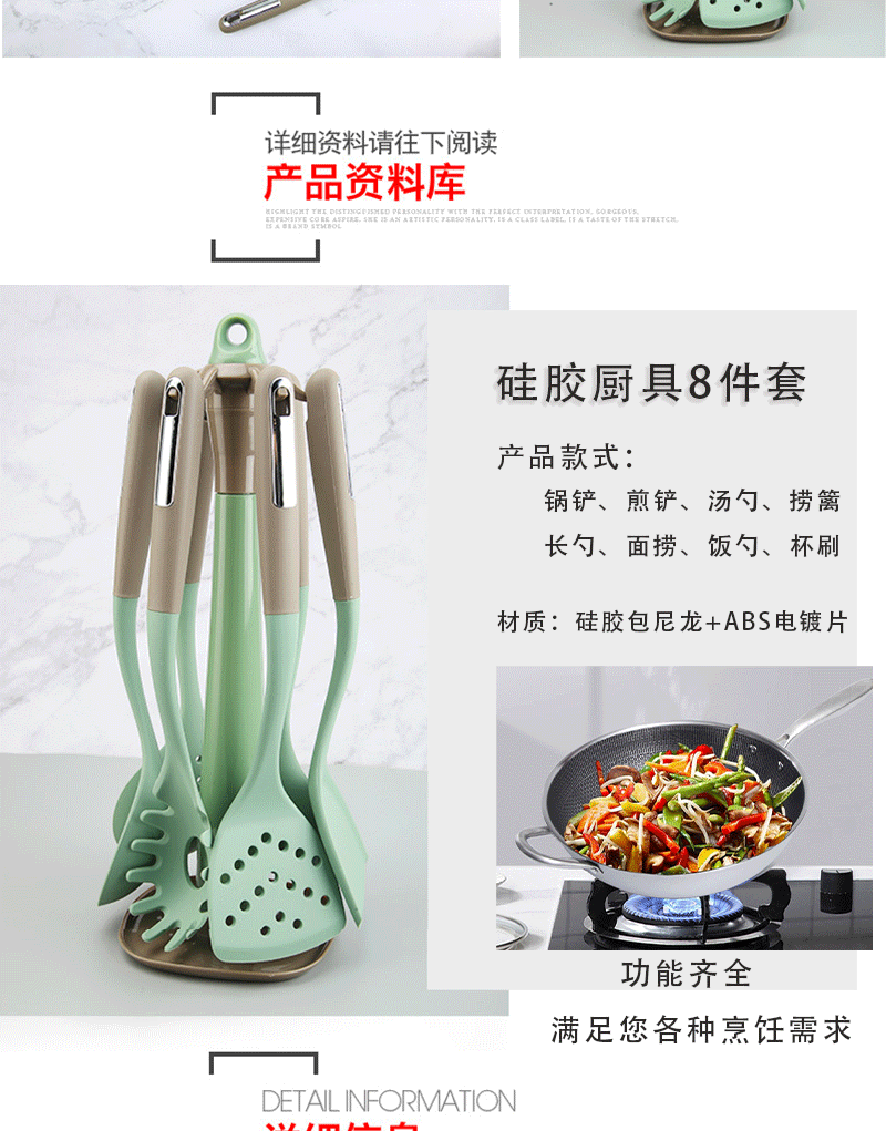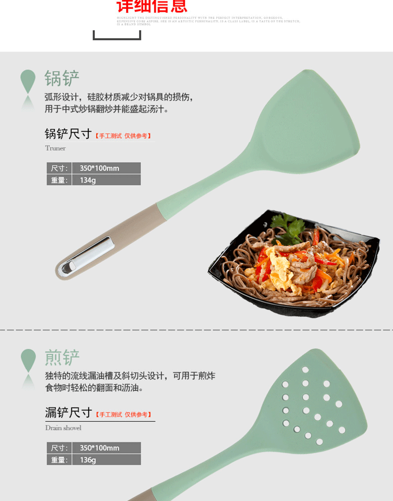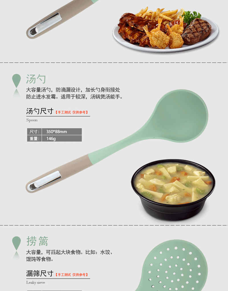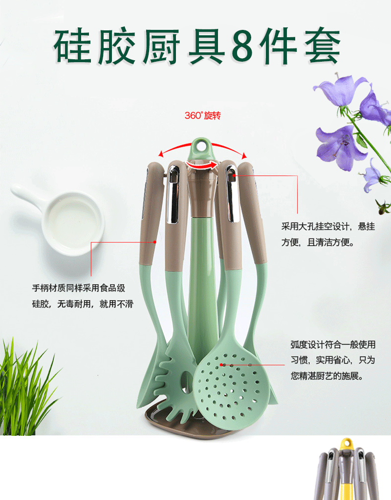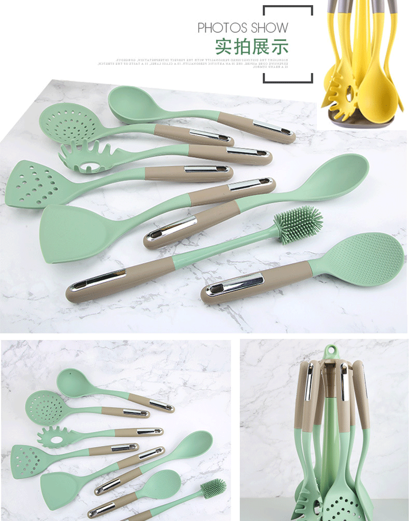 가정용 2 색 실리콘 조리기구 실리콘 스쿠 트 수프 스푼 스틱 조리기구 랙 주방 요리 도구 세트