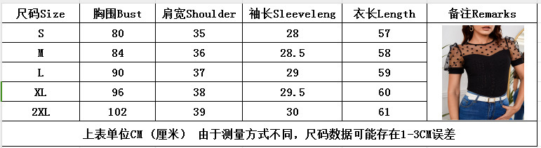 2024 봄과 여름 유럽과 미국의 새로운 여성 메시 물방울 무늬 단색 둥근 목 편안한 캐주얼 슬림 핏 반소매 티셔츠