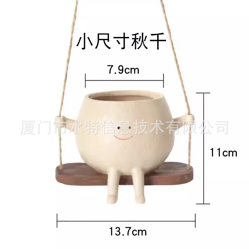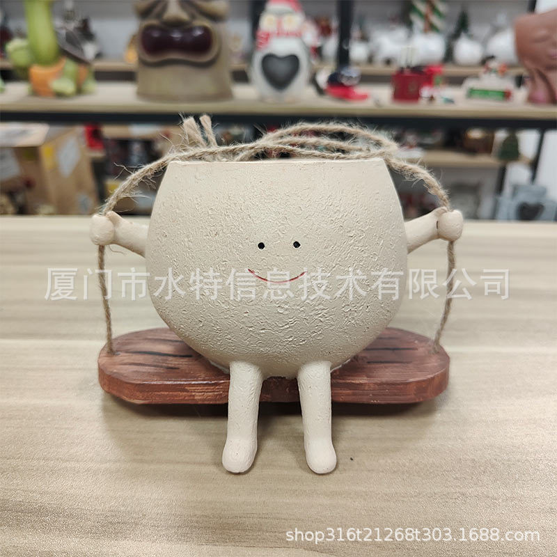 국경을 넘는 인기 다육식물 화분 귀여운 웃는 얼굴 창의적인 작은 그네 화분 인터넷 유명 개성 화분 장식품 레진