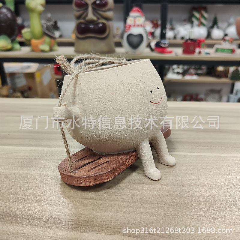 국경을 넘는 인기 다육식물 화분 귀여운 웃는 얼굴 창의적인 작은 그네 화분 인터넷 유명 개성 화분 장식품 레진스토어 가기