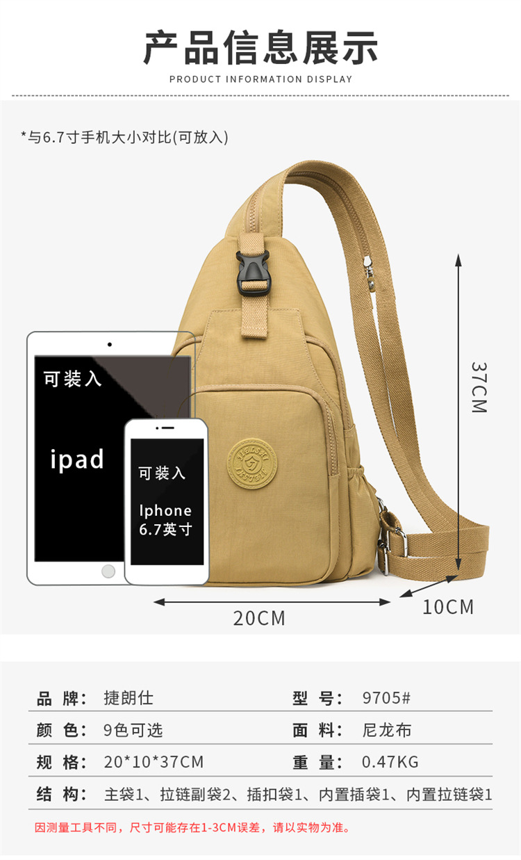 대용량 통근 어깨 가방 캐주얼 여행 가슴 가방 경량 방수 나일론 천 가방 여성용 다기능 배낭
