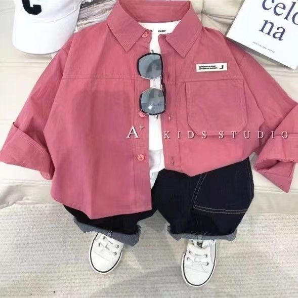 어린이 의류 봄과 가을 셔츠 2023 새로운 패션 긴팔 소년 및 소녀 아기 탑 중소 어린이 아웃웨어 셔츠 트렌디