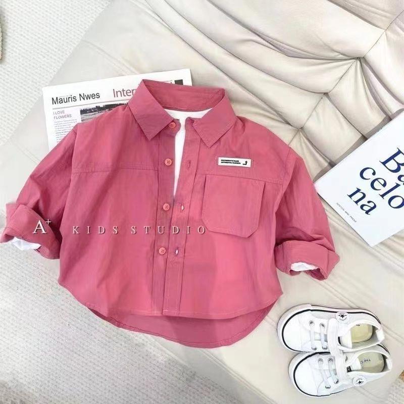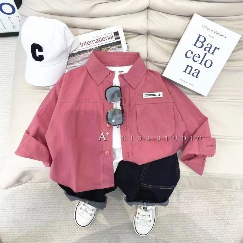 어린이 의류 봄과 가을 셔츠 2023 새로운 패션 긴팔 소년 및 소녀 아기 탑 중소 어린이 아웃웨어 셔츠 트렌디스토어 가기