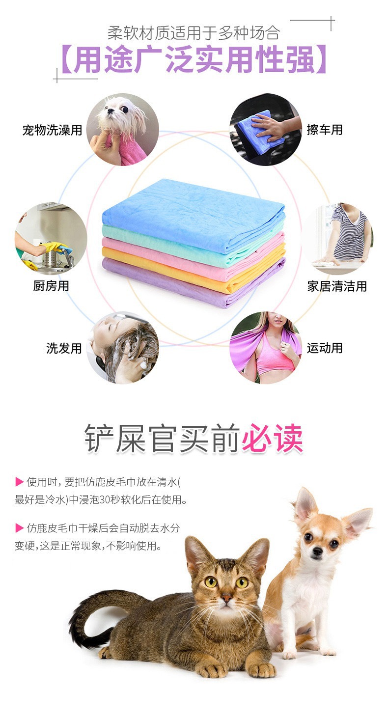 국경을 넘는 애완용품 흡수성 수건 대형 두꺼운 강아지 고양이 목욕 및 청소용 시원하고 빠르게 건조되는 인조 사슴가죽 수건스토어 가기