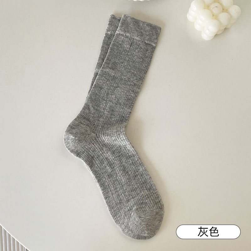 봄과 여름 여성용 솔리드 컬러 파일 양말 메쉬 땀 흡수 통기성 발레 스타일 중반 송아지 양말 여성용 여름 얇은 양말