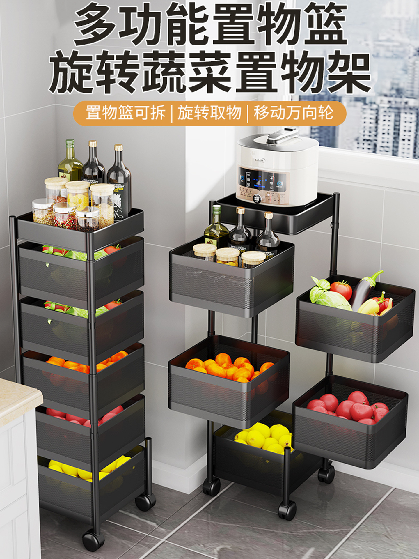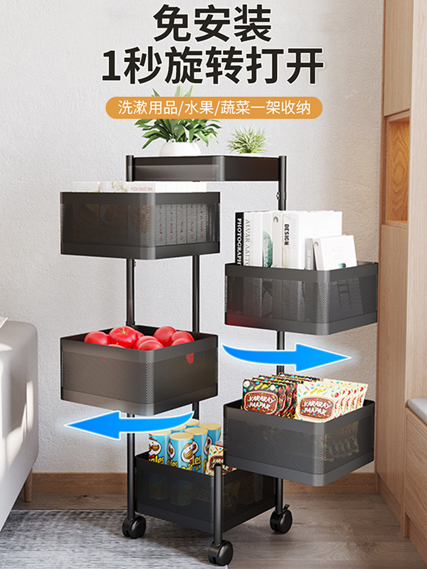 주방 수납 선반 설치 불필요 다층 야채 과일 선반 가정용 다기능 과일 간식 보관 접이식스토어 가기