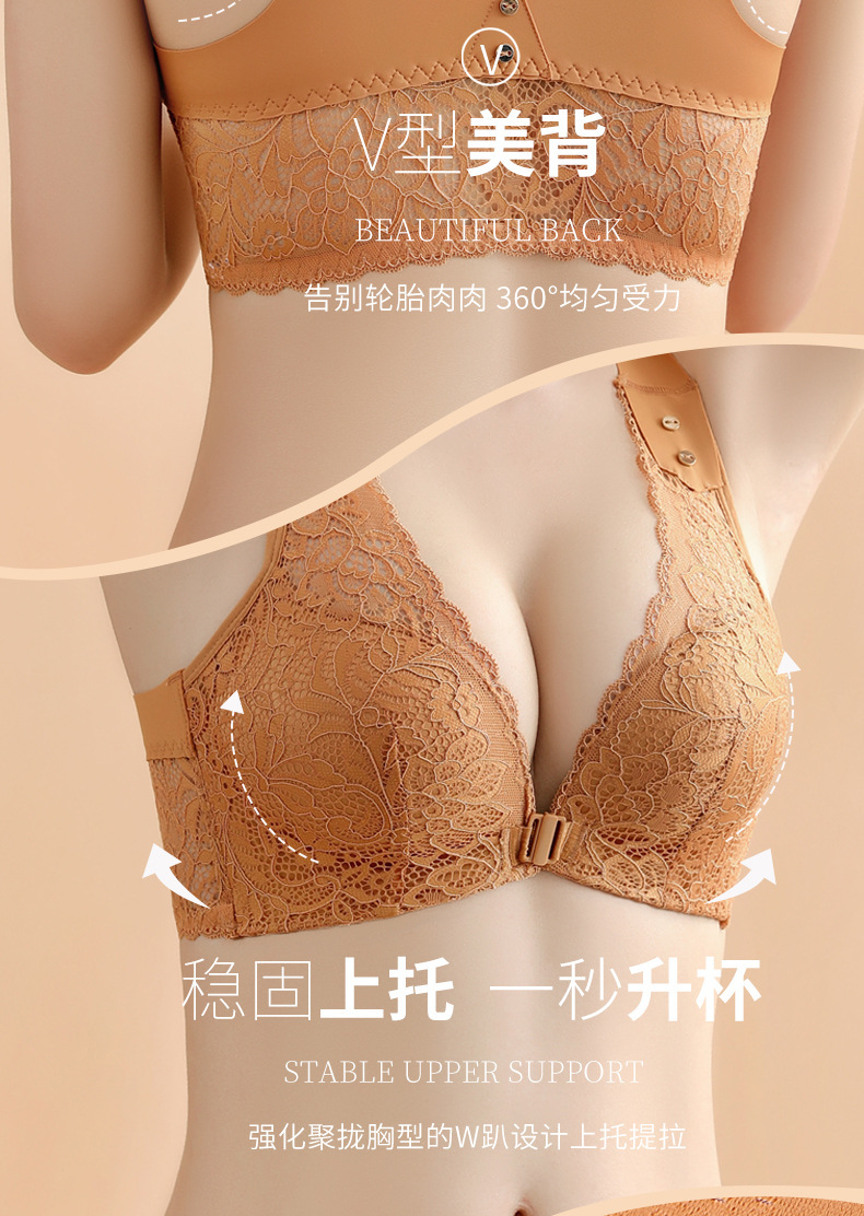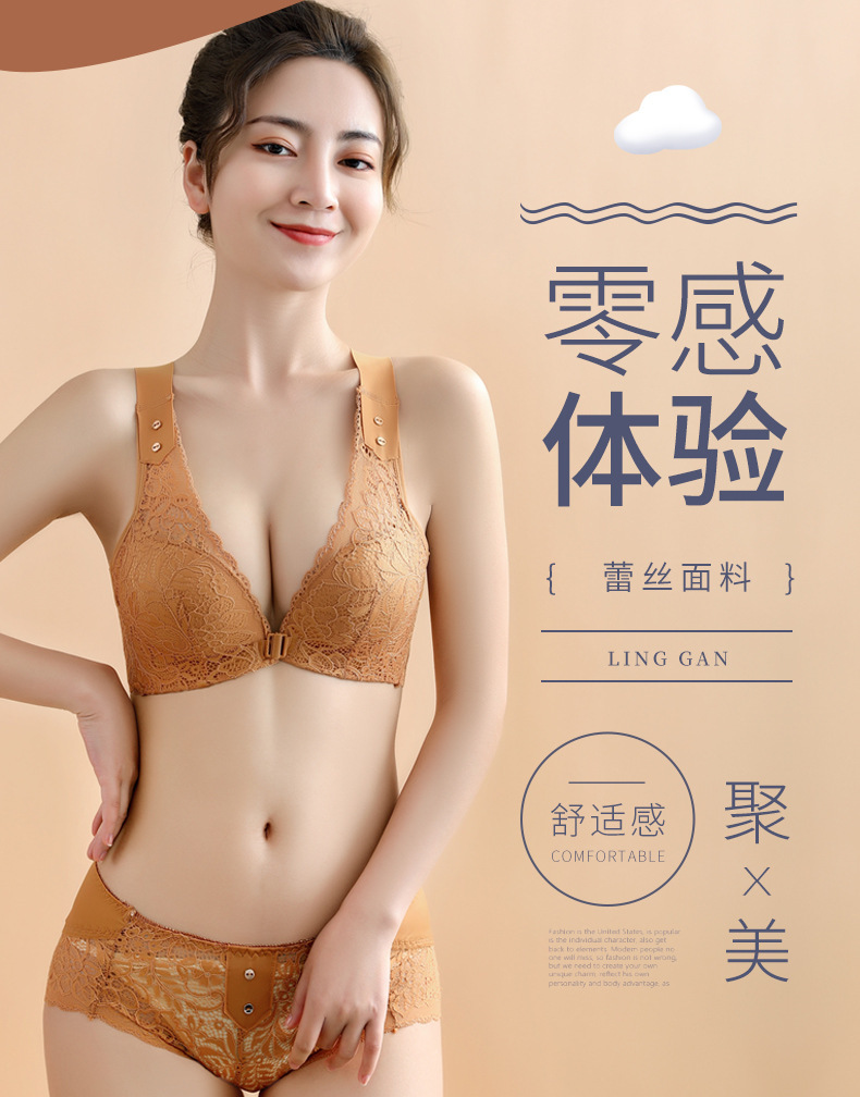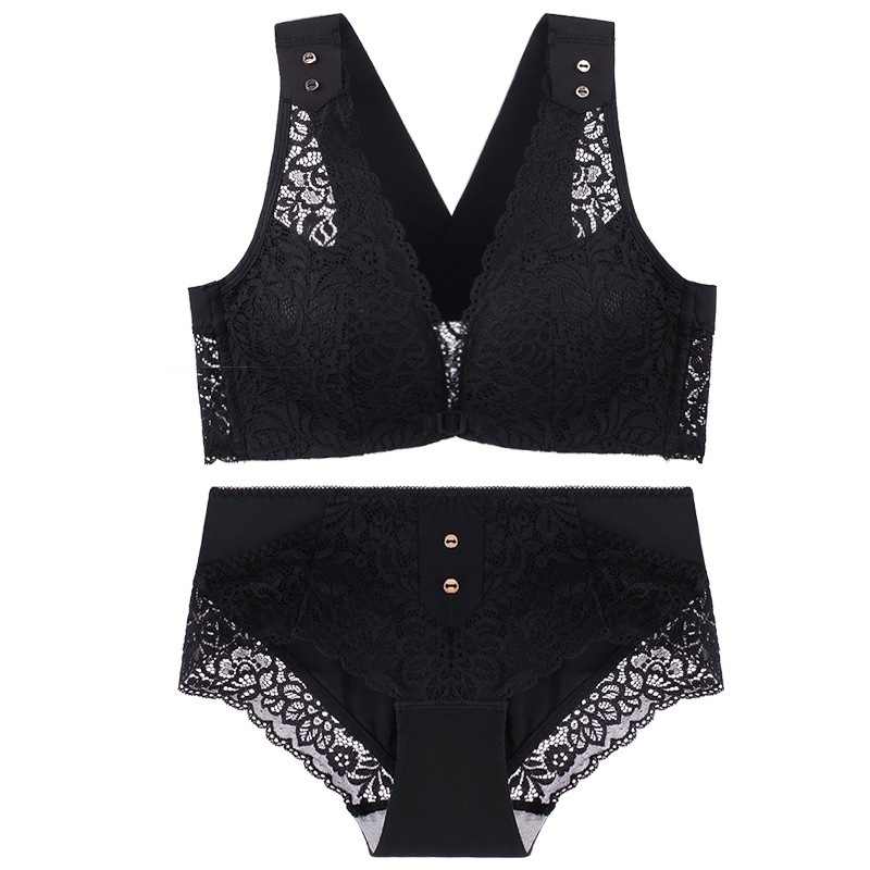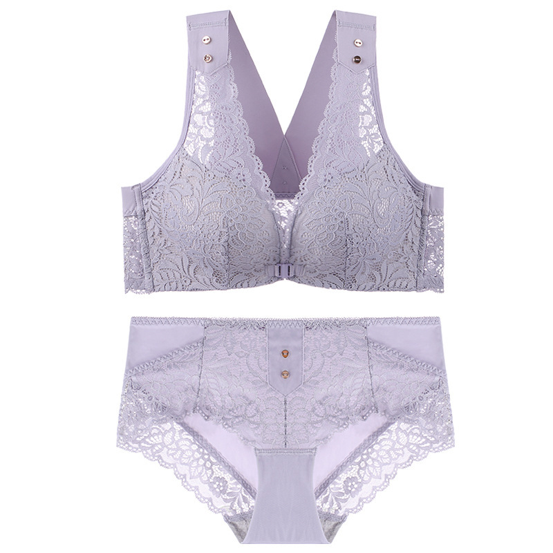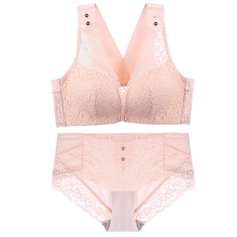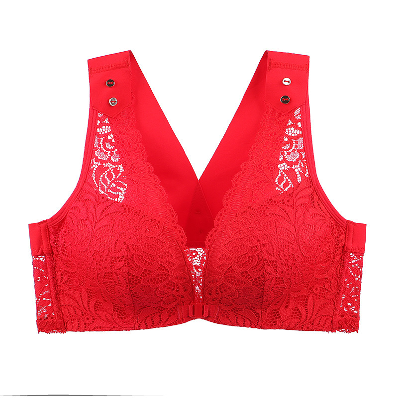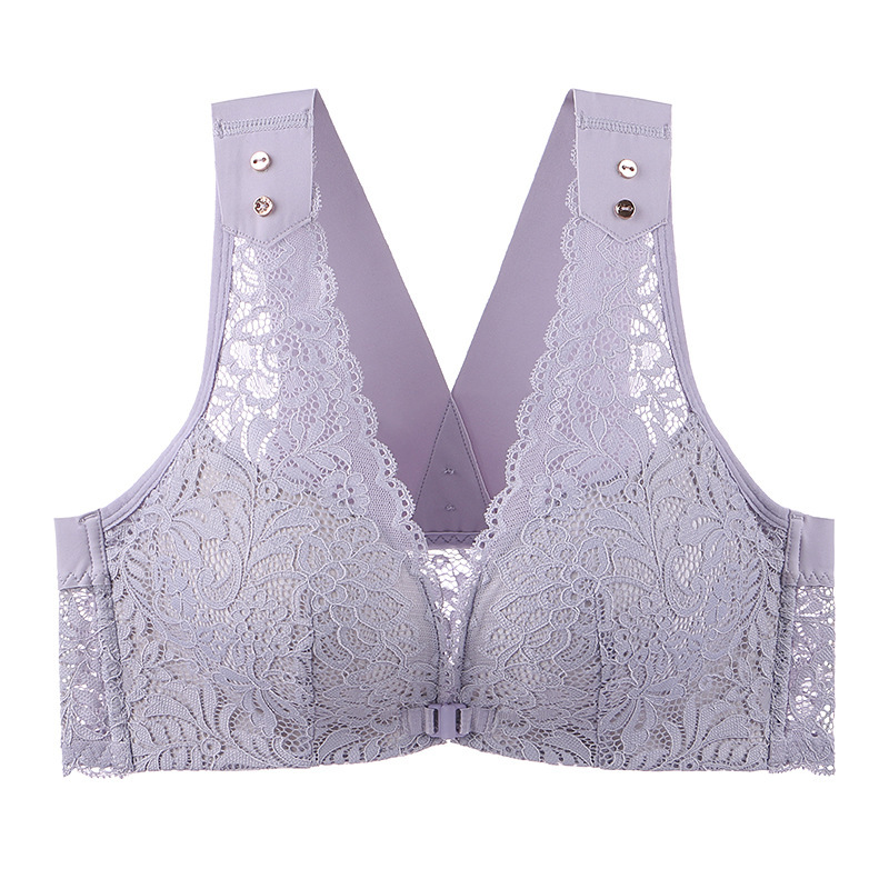 유럽과 미국의 대외 무역 대형 프론트 버클 속옷 여성용 대형 가슴은 반지 레이스 백 브래지어없이 작은 가슴을 모으십시오