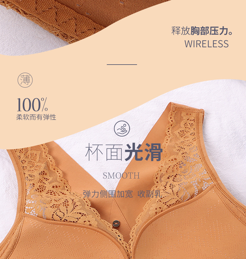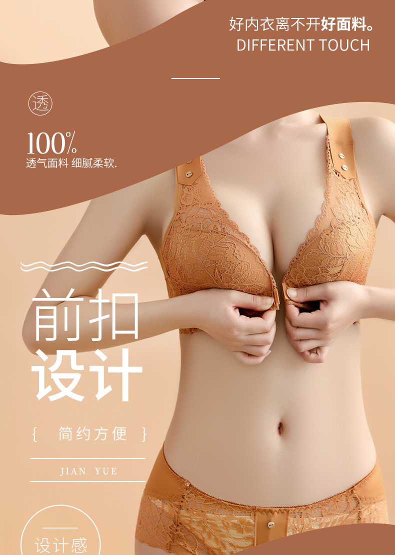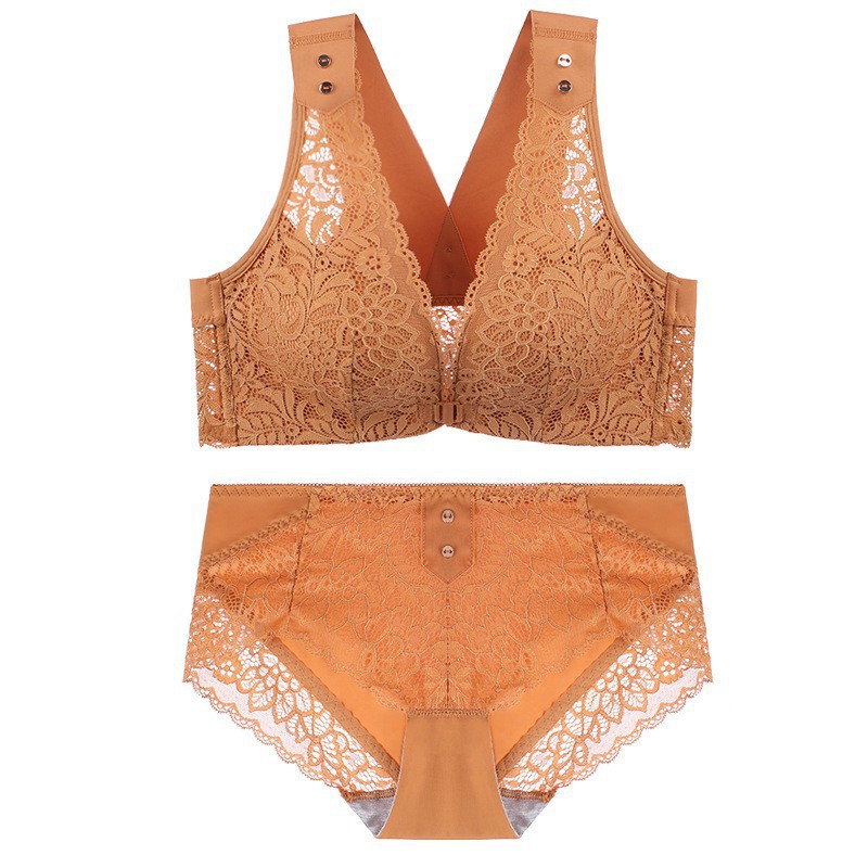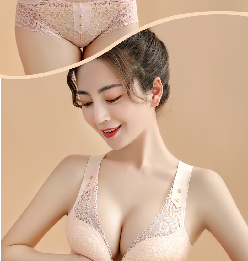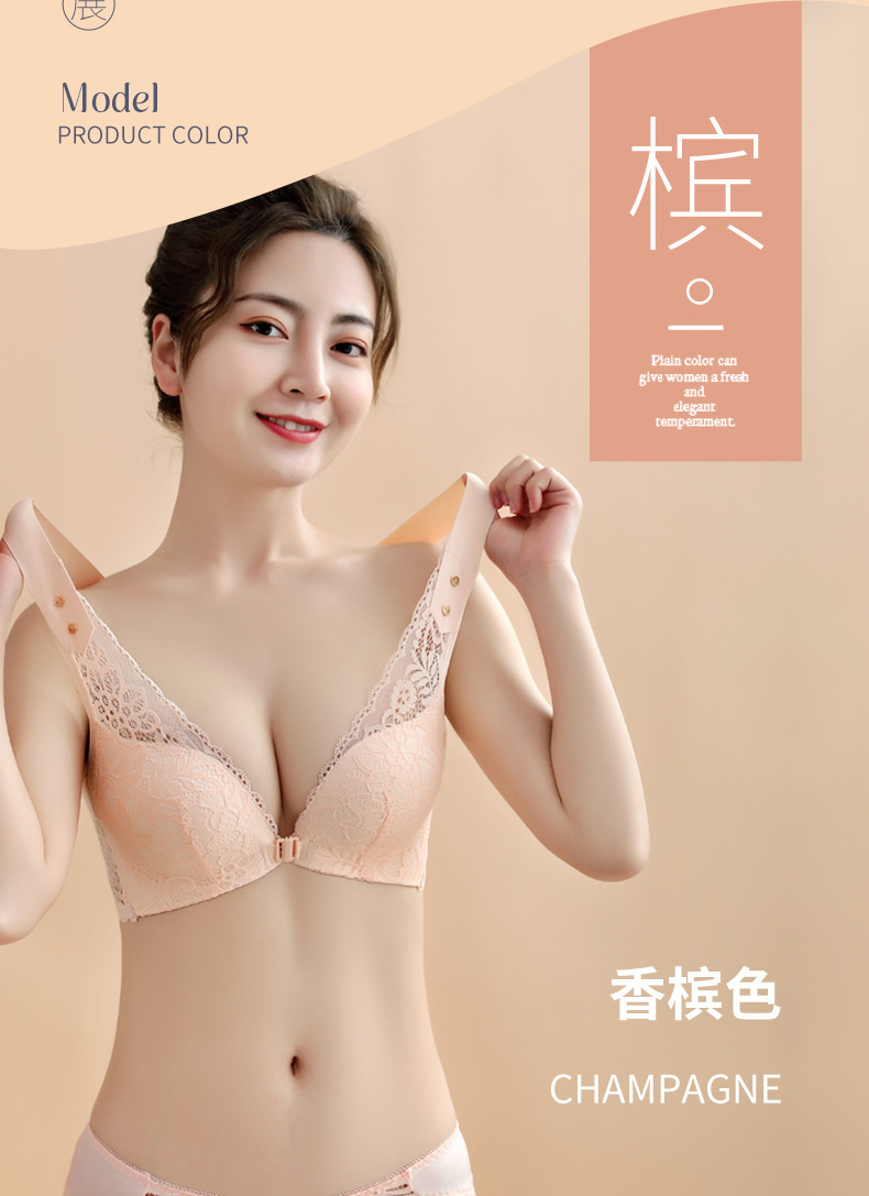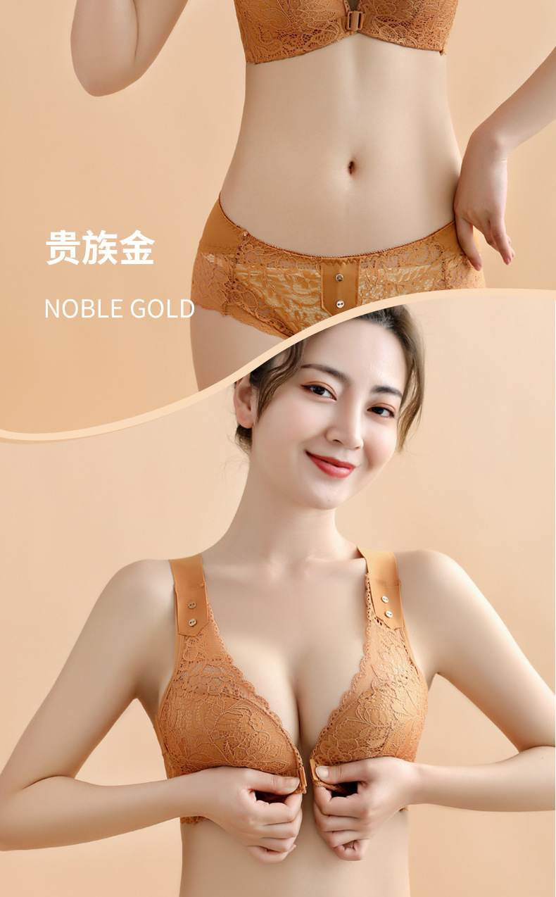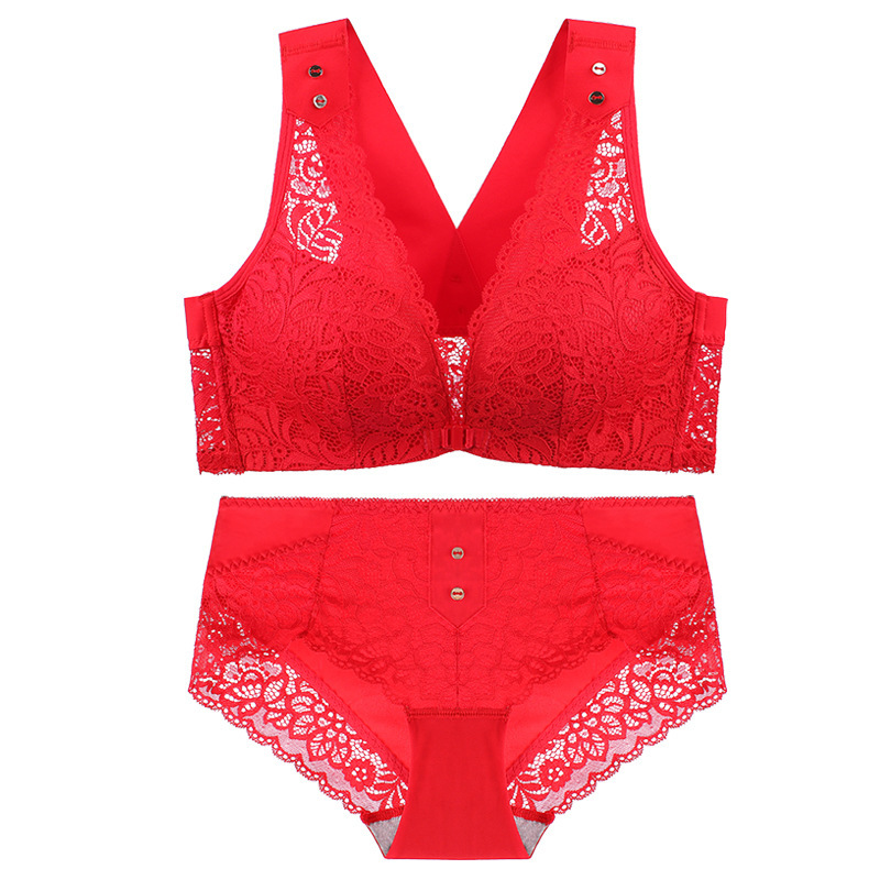 유럽과 미국의 대외 무역 대형 프론트 버클 속옷 여성용 대형 가슴은 반지 레이스 백 브래지어없이 작은 가슴을 모으십시오