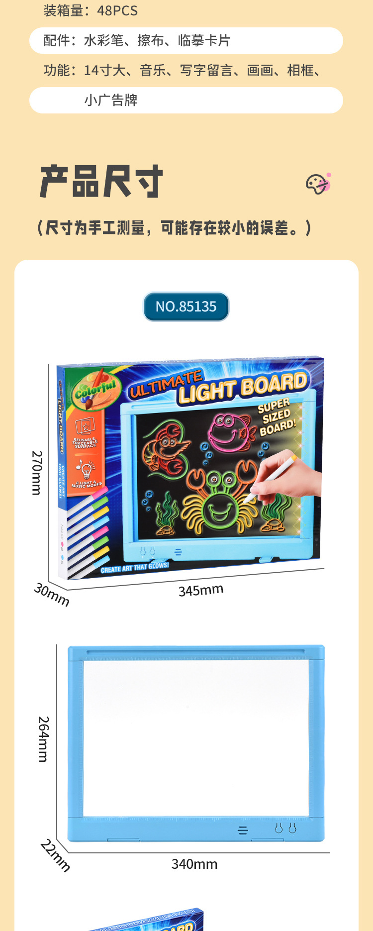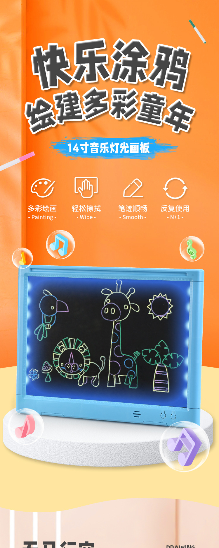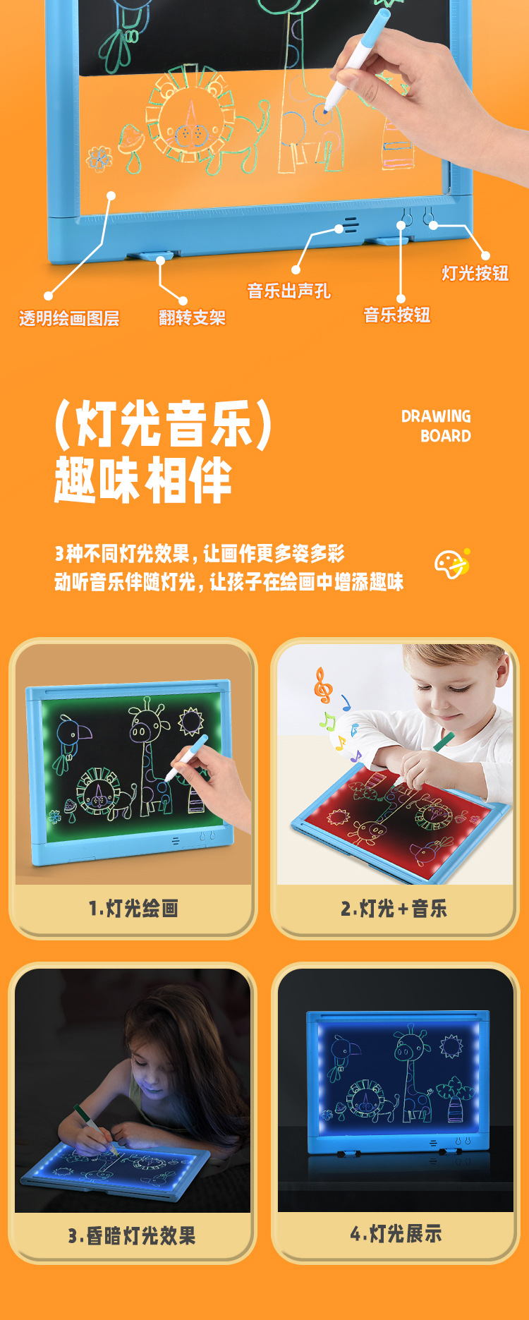 LED 조명 음악 쓰기 보드 3D 매직패드 어린이 낙서 그림판 장난감 컬러 드로잉 보드스토어 가기