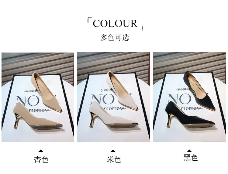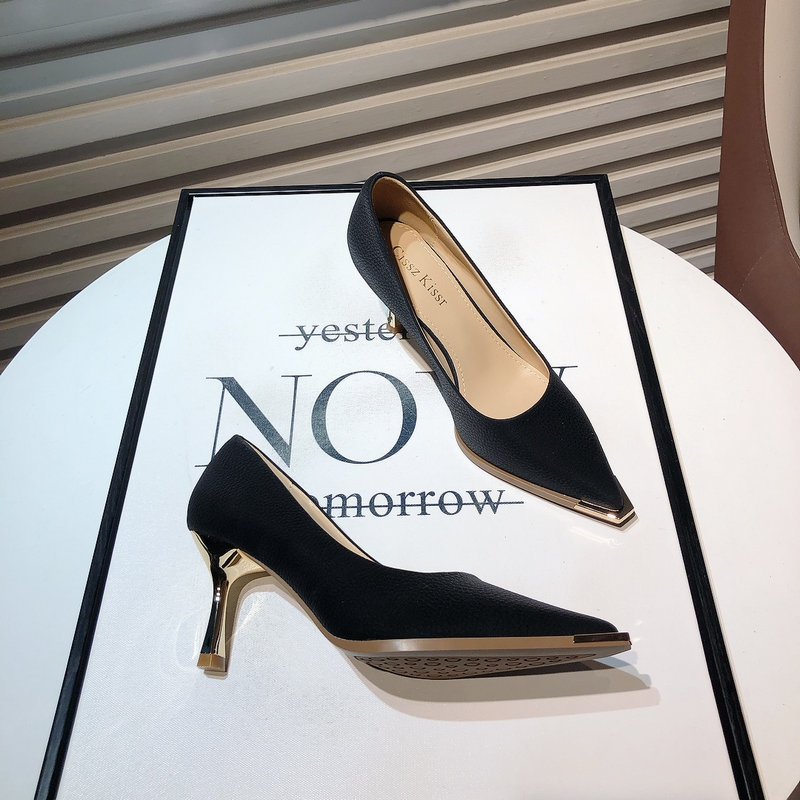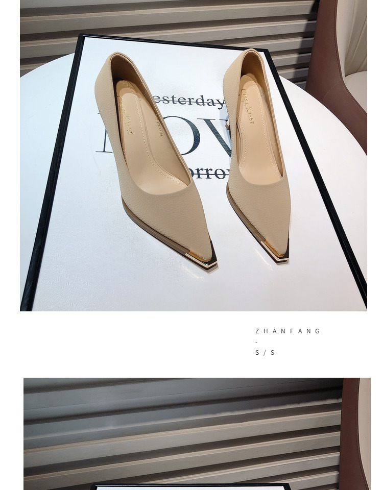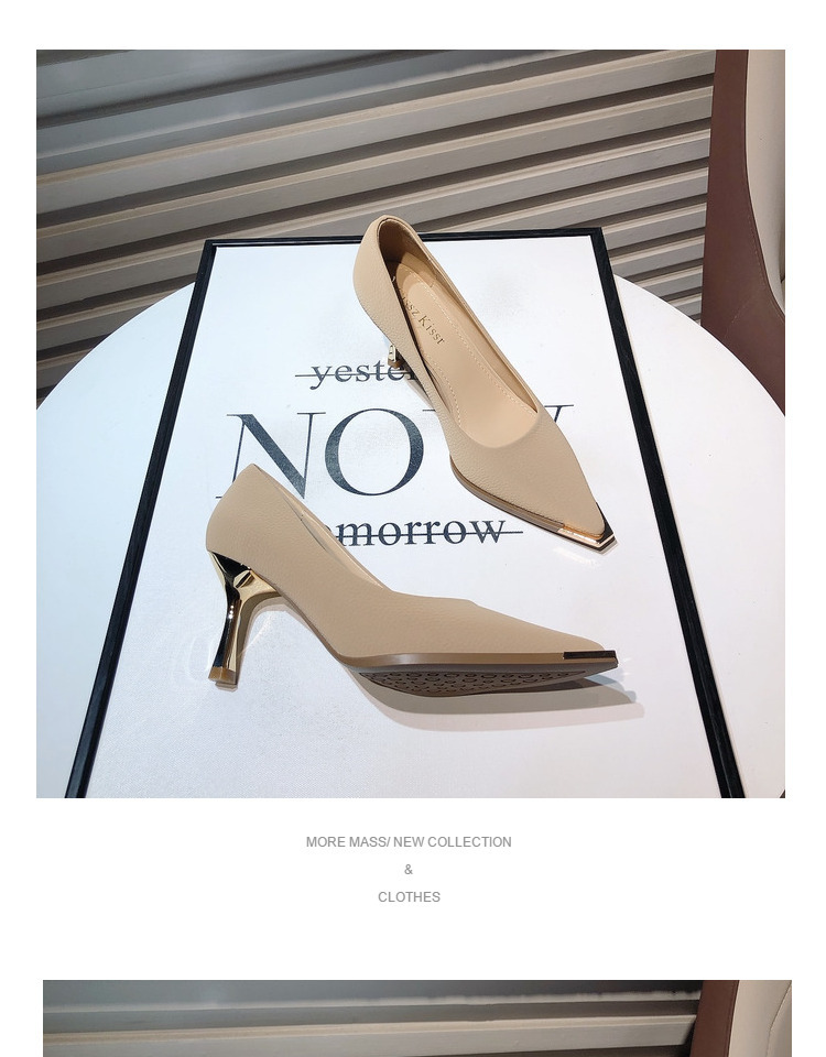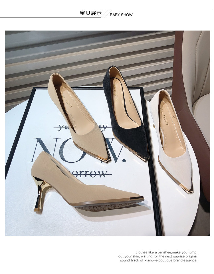 프랑스 스타일 여성 하이힐 2024 봄 신상 메탈 포인티드 토 얕은굽 얇은굽 싱글 슈즈 통근/오피스 슈즈 다용도스토어 가기