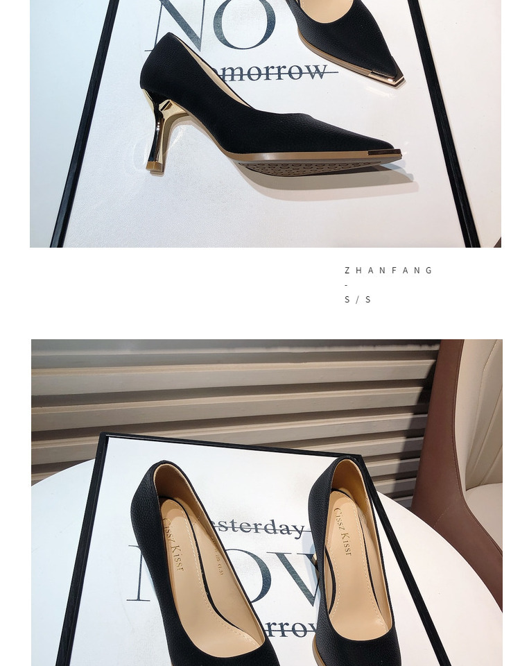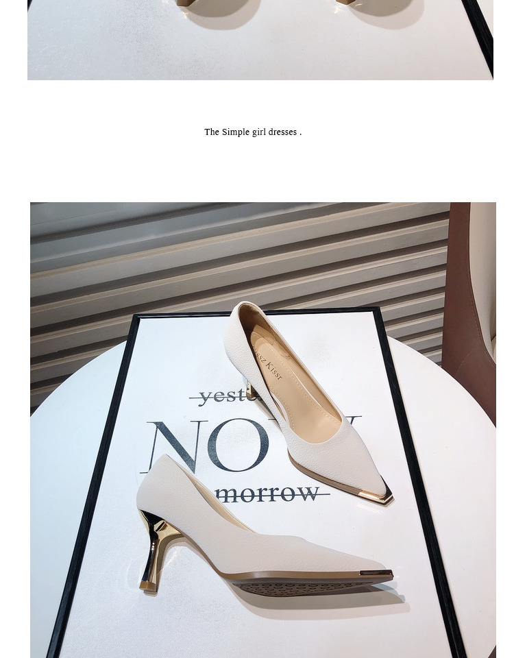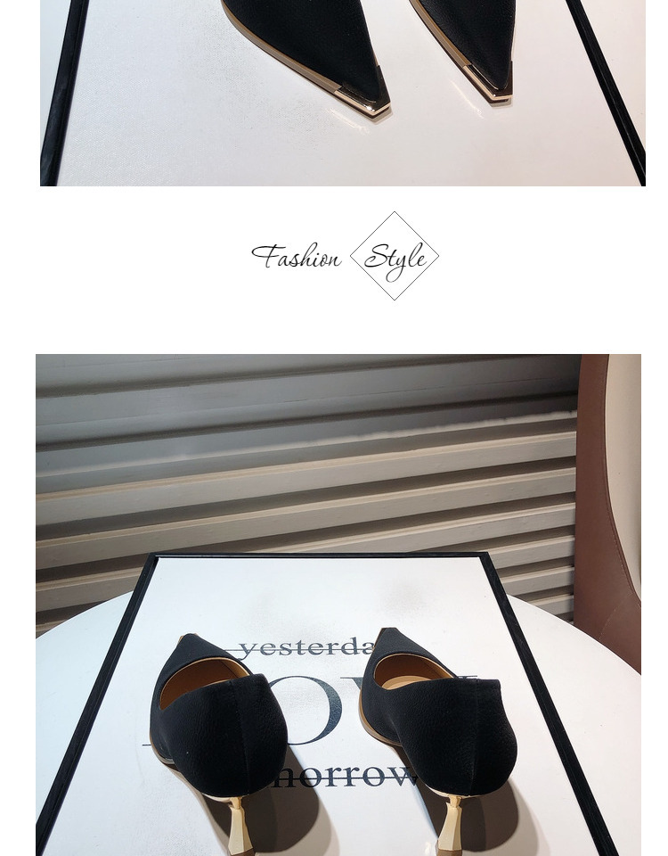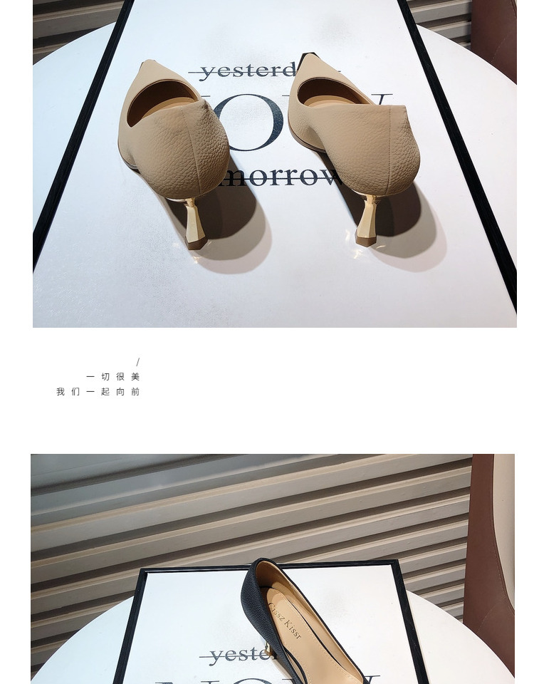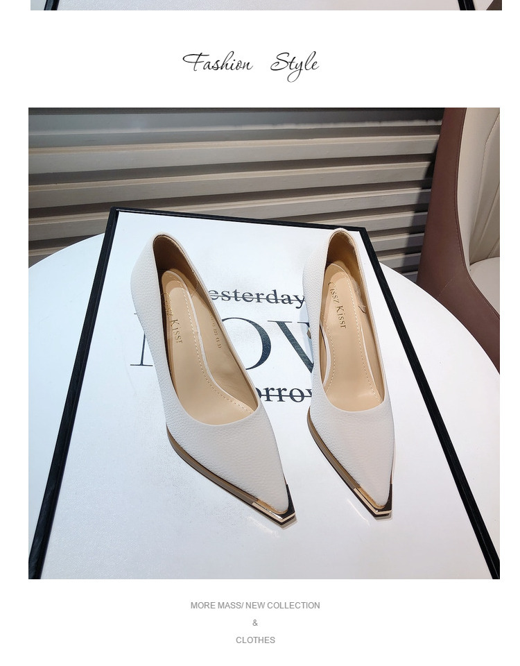 프랑스 스타일 여성 하이힐 2024 봄 신상 메탈 포인티드 토 얕은굽 얇은굽 싱글 슈즈 통근/오피스 슈즈 다용도스토어 가기