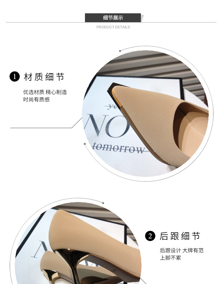 프랑스 스타일 여성 하이힐 2024 봄 신상 메탈 포인티드 토 얕은굽 얇은굽 싱글 슈즈 통근/오피스 슈즈 다용도