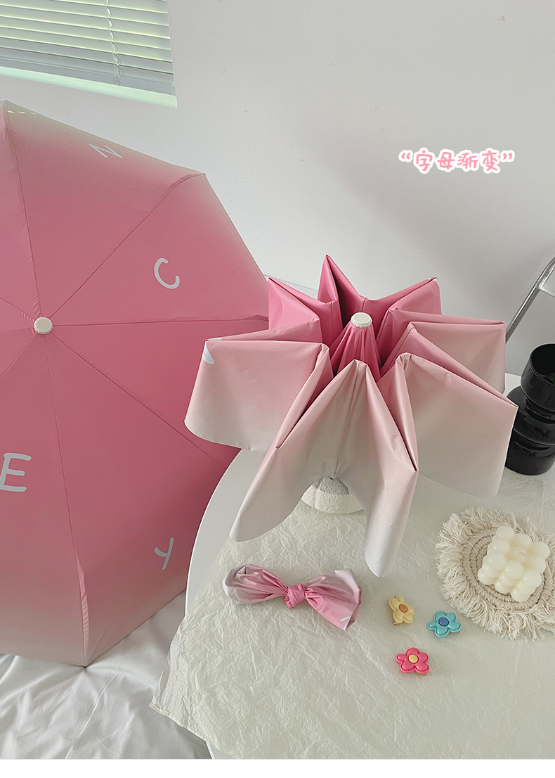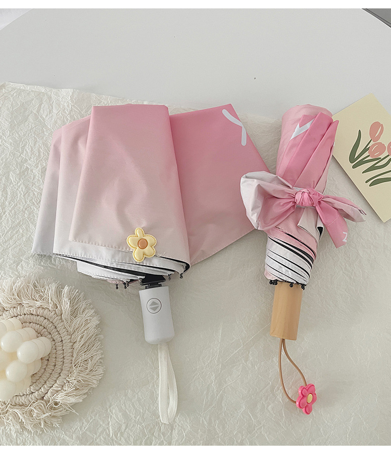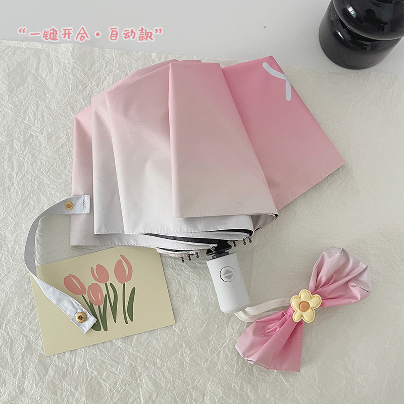 장미 빛 바다 소금 그라디언트 Ins 완전 자동 태양 우산 태양 보호 UV 보호 써니 우산 이중 사용 우산스토어 가기