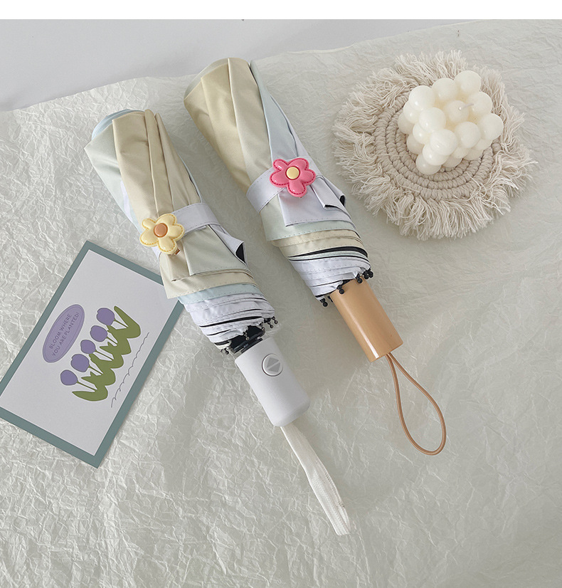 장미 빛 바다 소금 그라디언트 Ins 완전 자동 태양 우산 태양 보호 UV 보호 써니 우산 이중 사용 우산