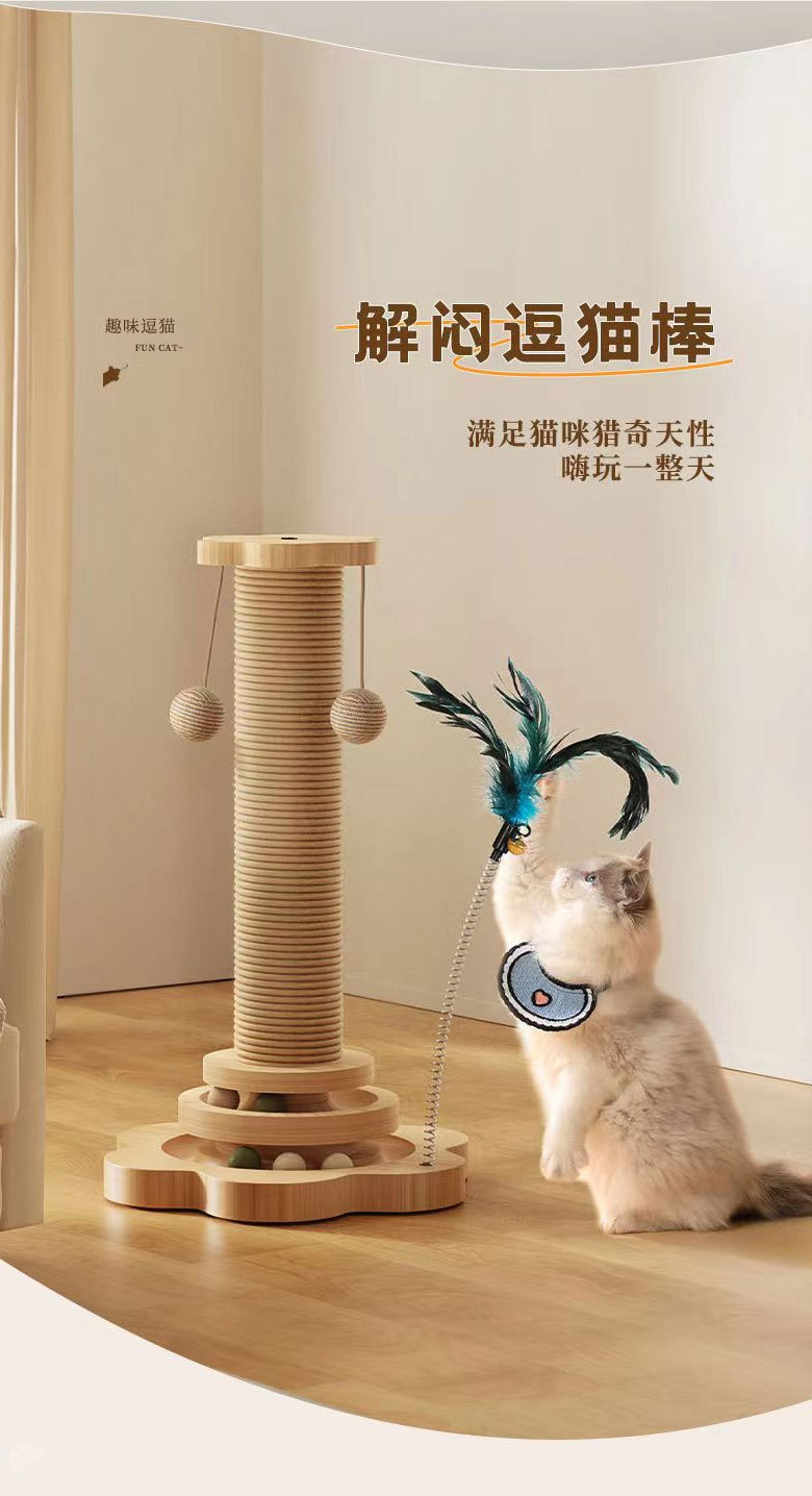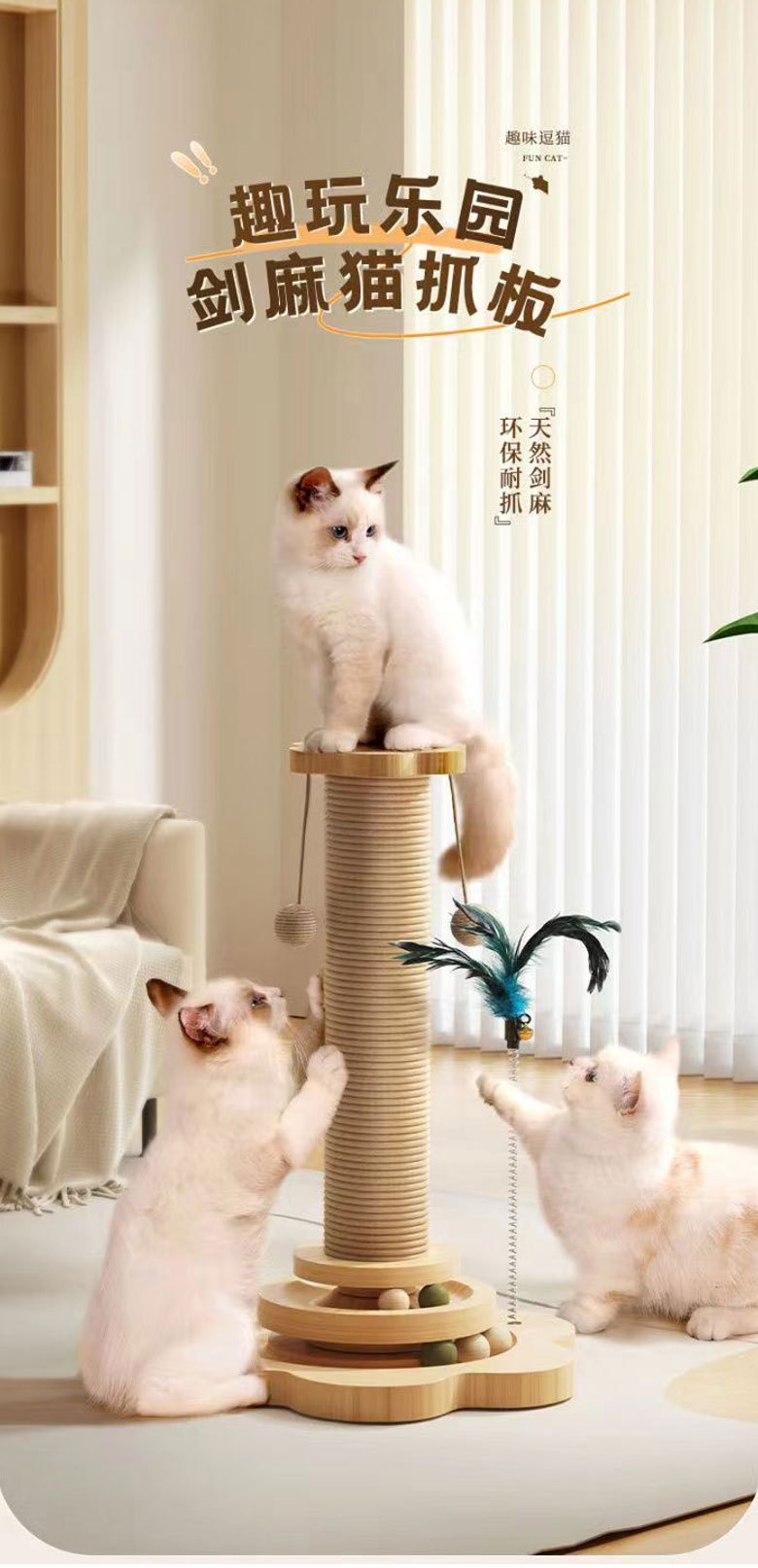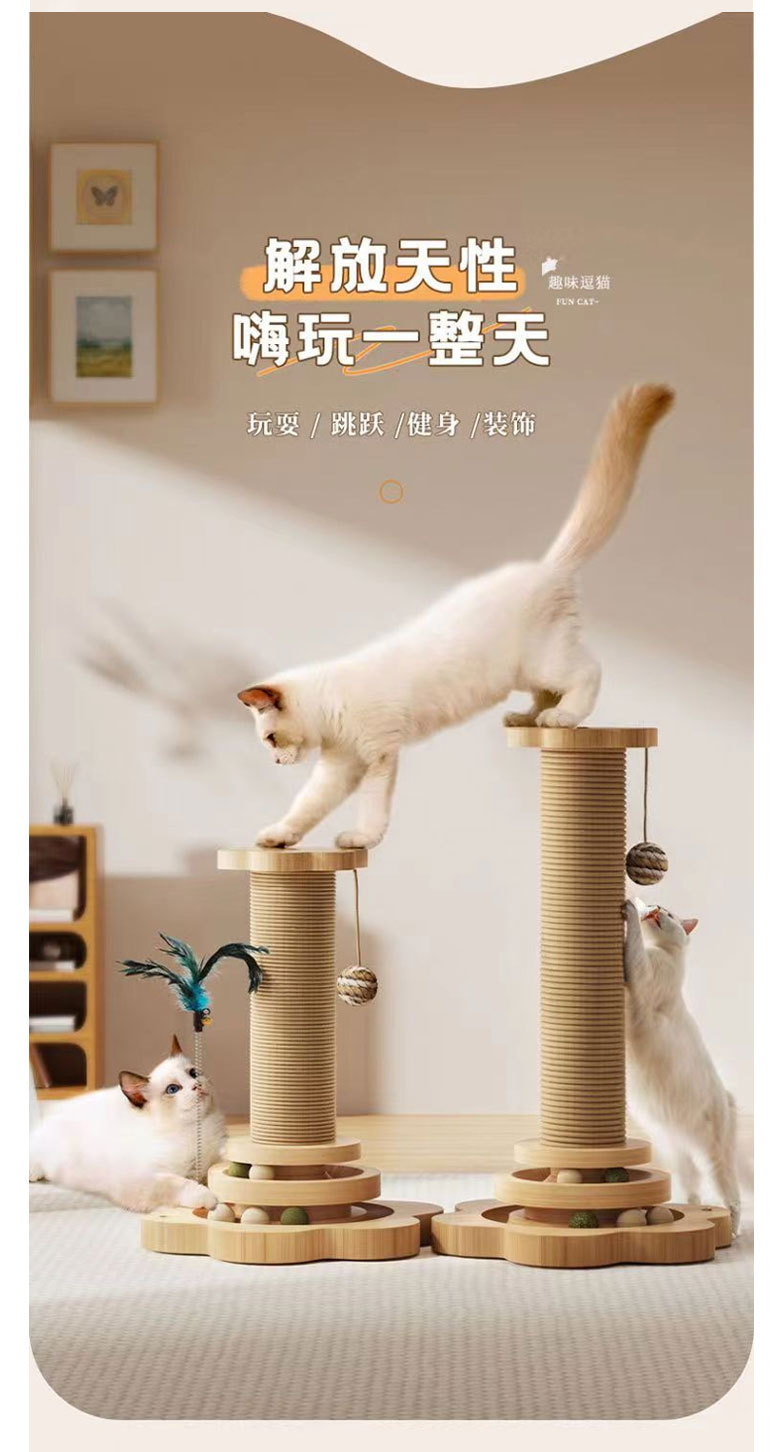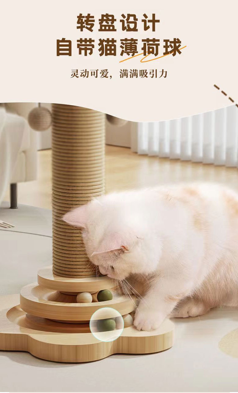고양이 스크래쳐, 스탠딩형 고양이 스크래쳐, 높이가 있는 원목 사자수 고양이 클라이밍 프레임, 고양이 놀이용품, 고양이 회전판 일체형 고양이 장난감스토어 가기