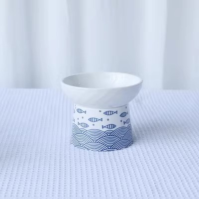 고양이 밥그릇 애완동물 세라믹 그릇 높이 조절 가능 목 보호 고양이 사료 그릇 밥그릇 물그릇 넘어짐 방지 강아지 물그릇 경사형스토어 가기