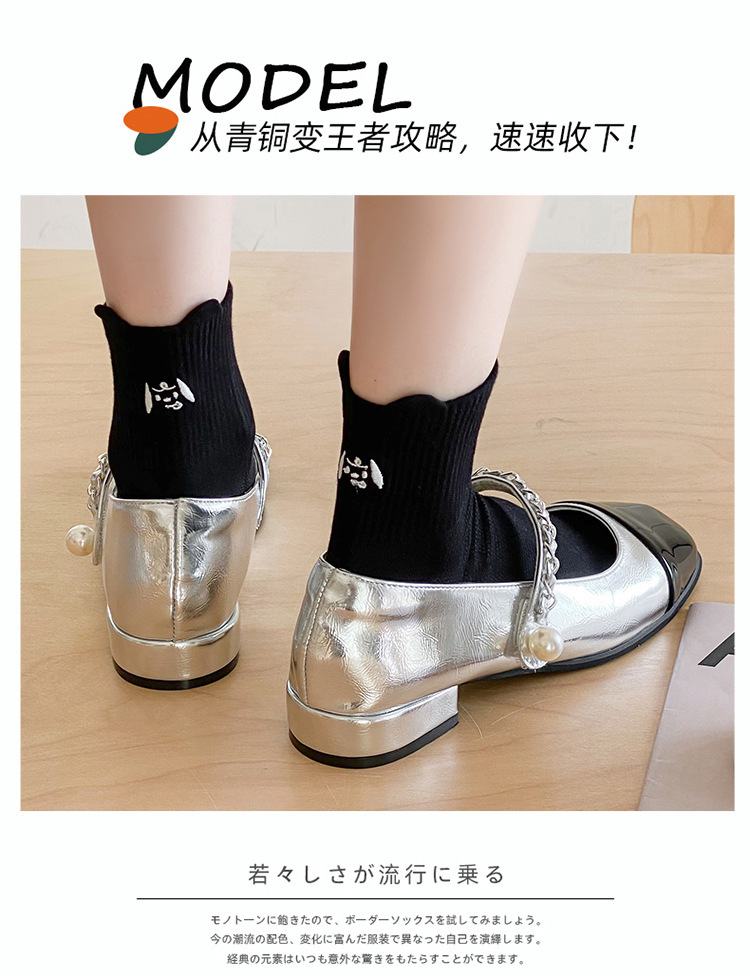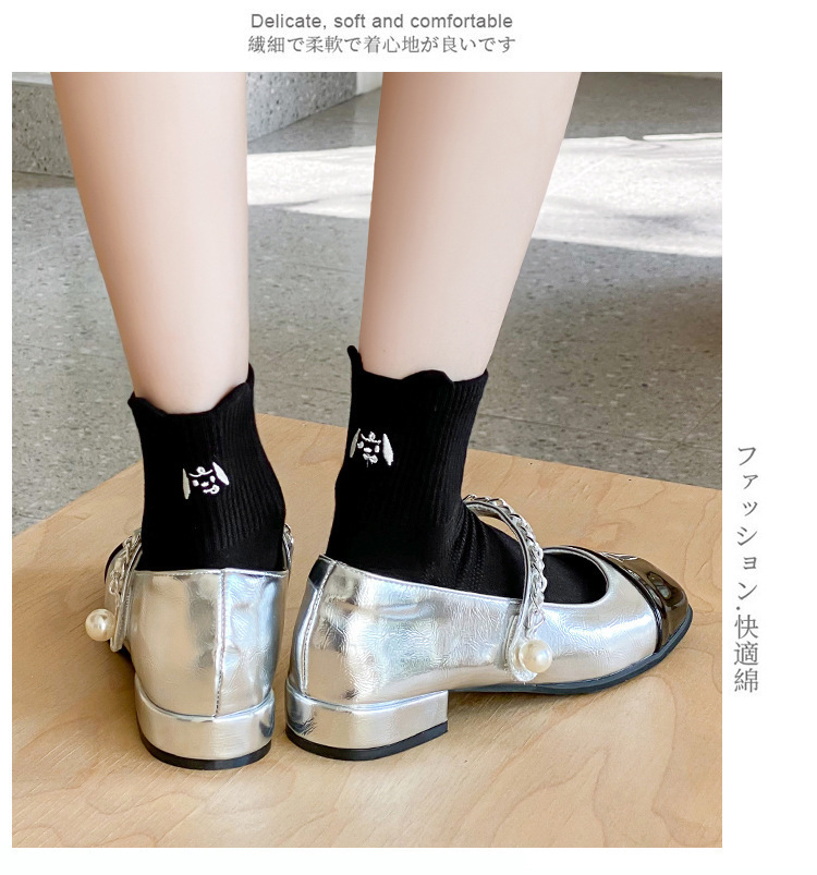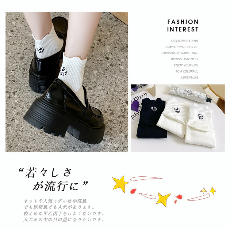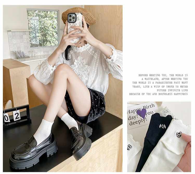 24 봄과 여름 흑백 귀여운 만화 여성 양말 통기성 메쉬 가열 동물 자수 여성면 양말스토어 가기
