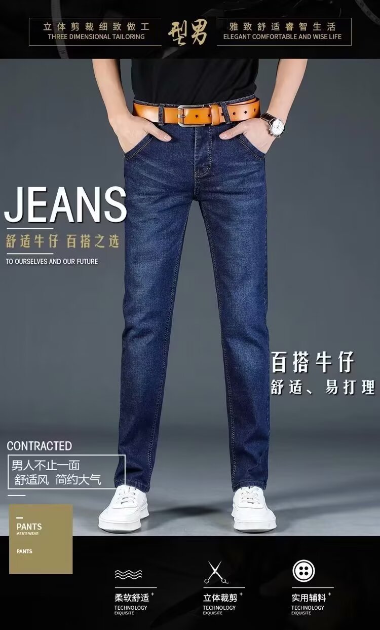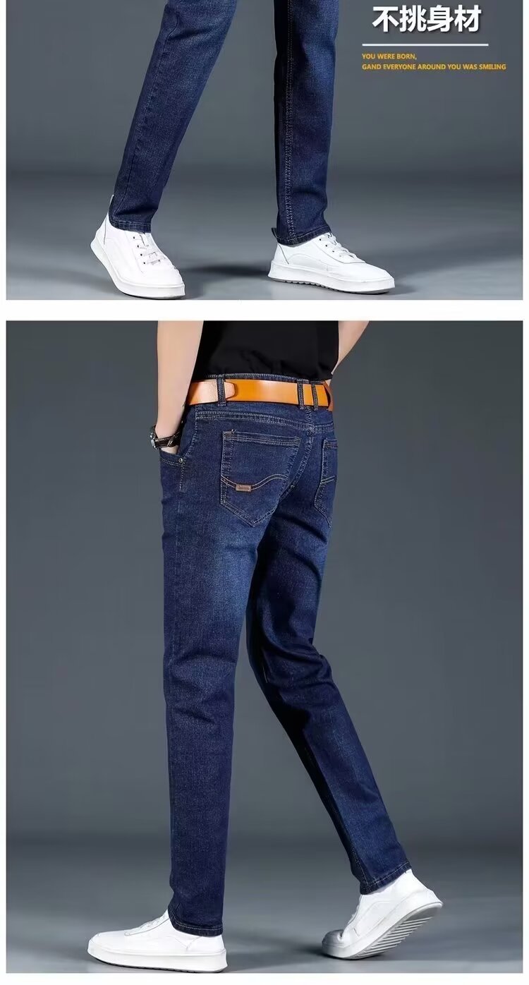 여름 남성 스트레치 청바지 스트레이트 느슨한 비즈니스 청소년 긴 바지 여름 얇은 내마모성 캐주얼 올 매칭스토어 가기