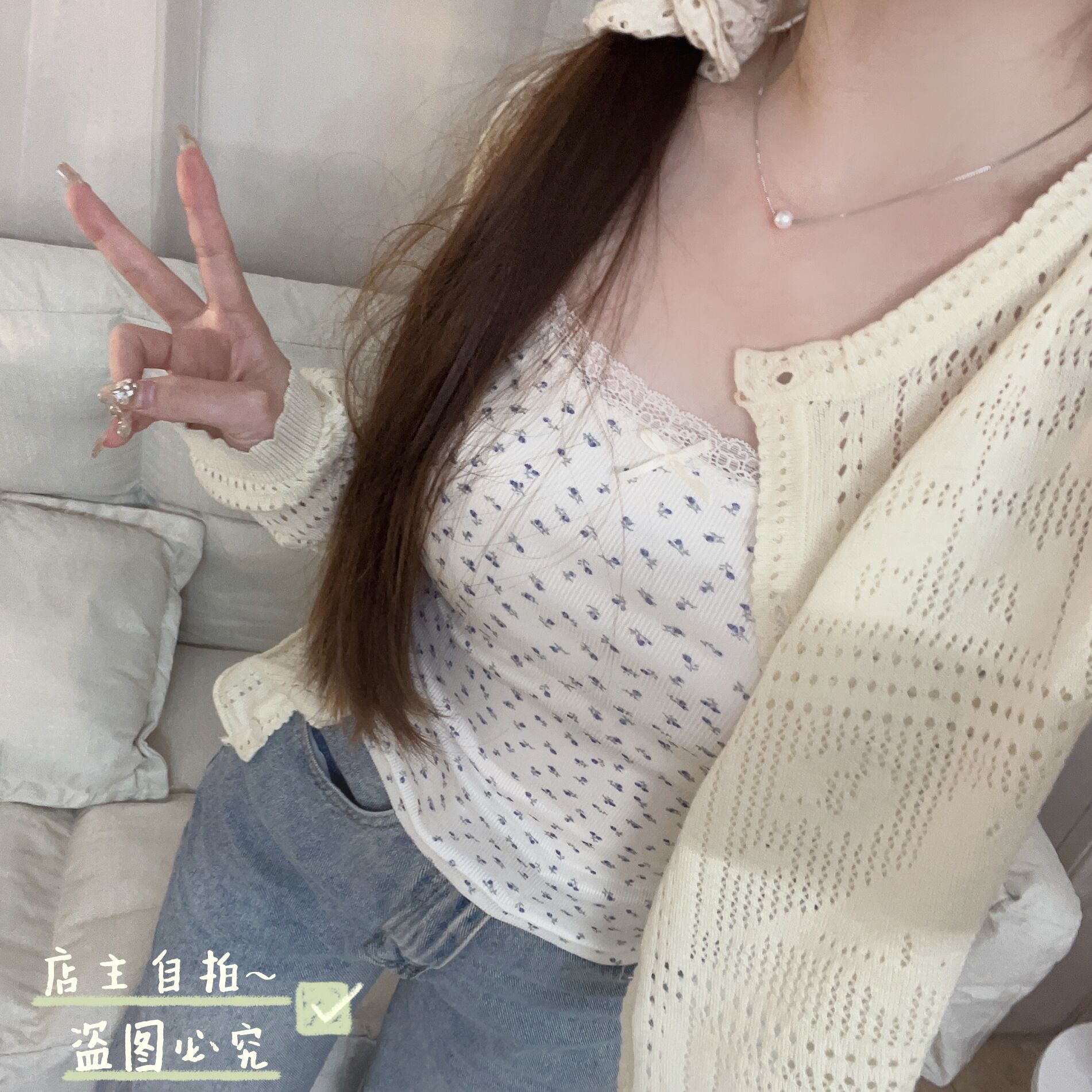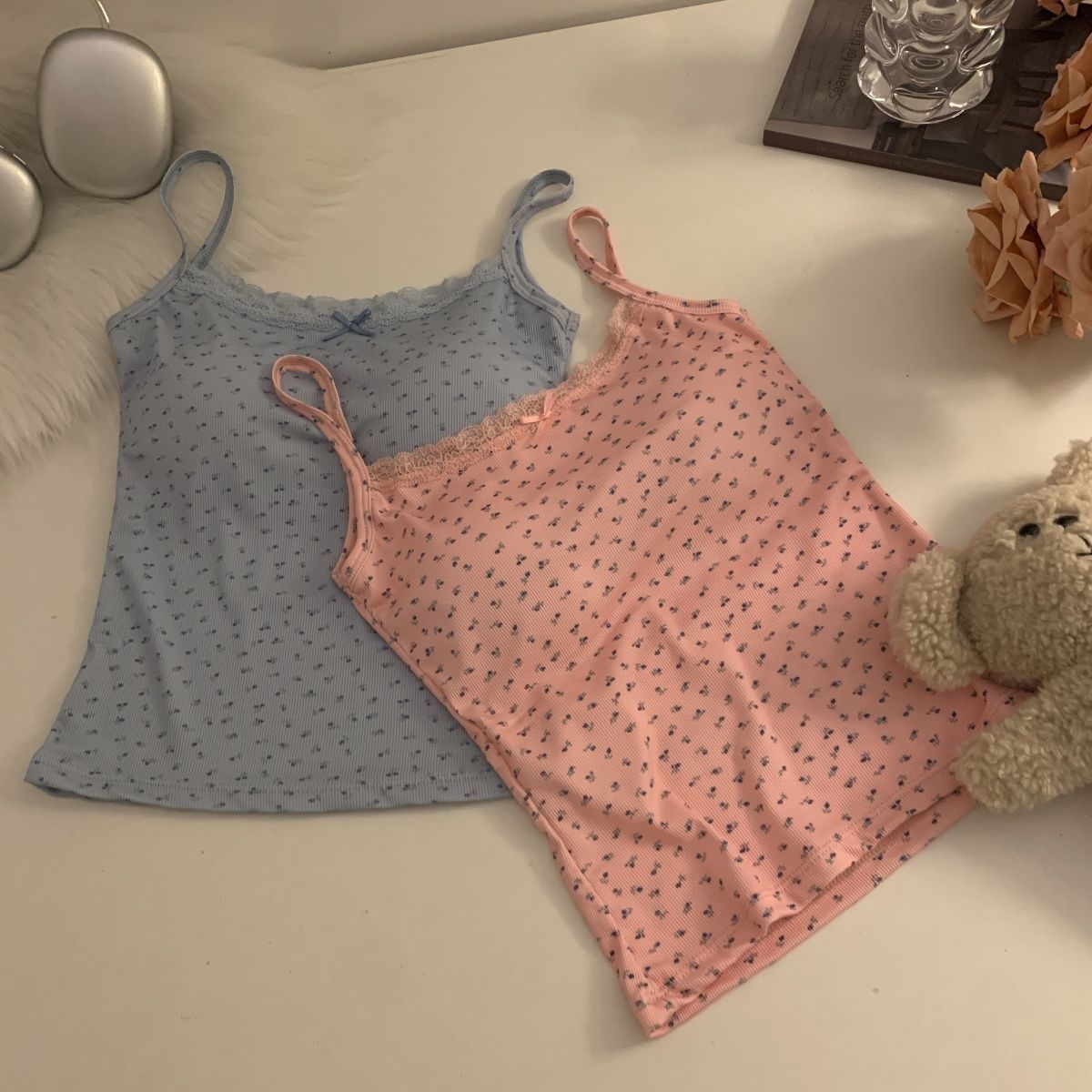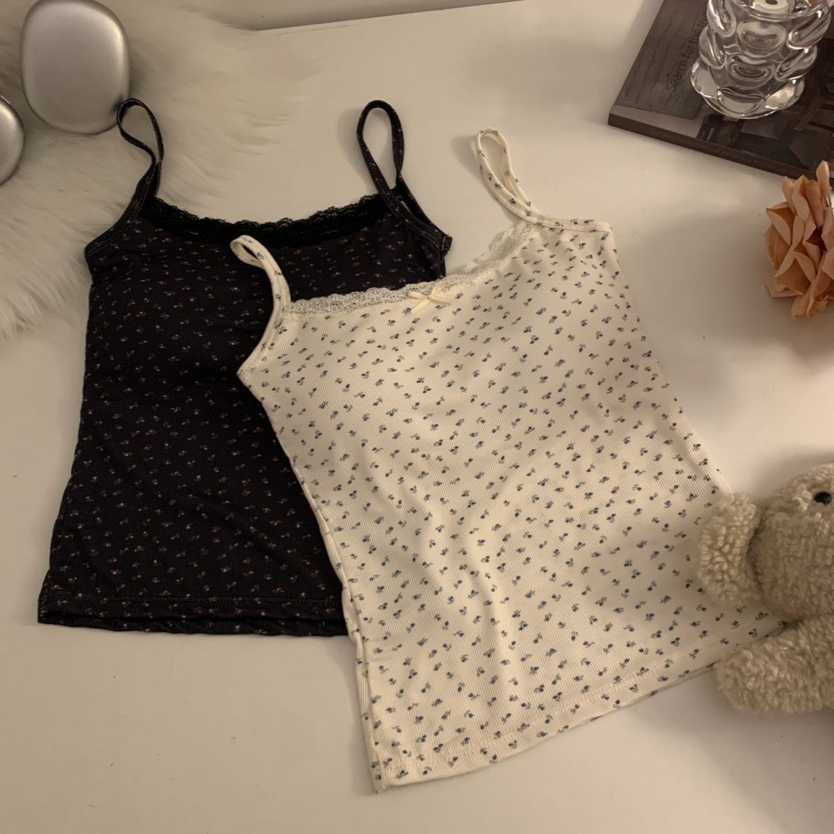 가슴 패드가있는 여성용 한국식 꽃 달콤한 캐미솔 순수한 섹시한 슬림 스티칭 슬리밍 바닥 탑