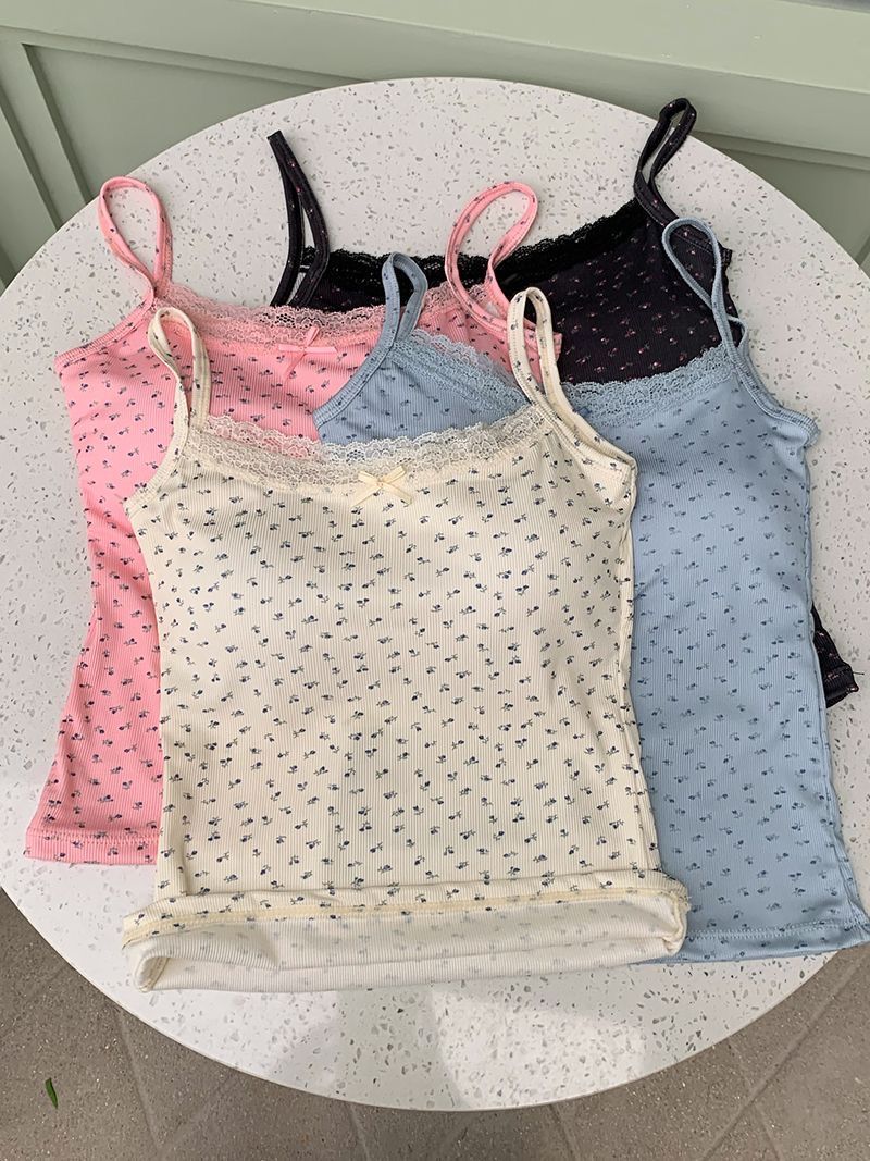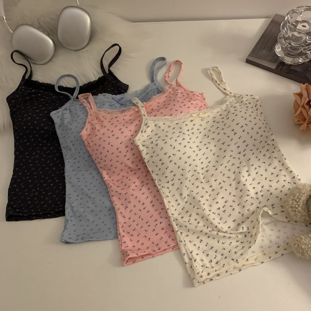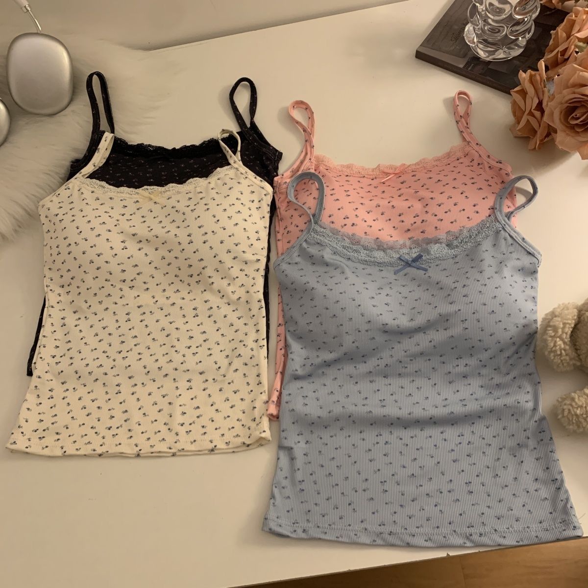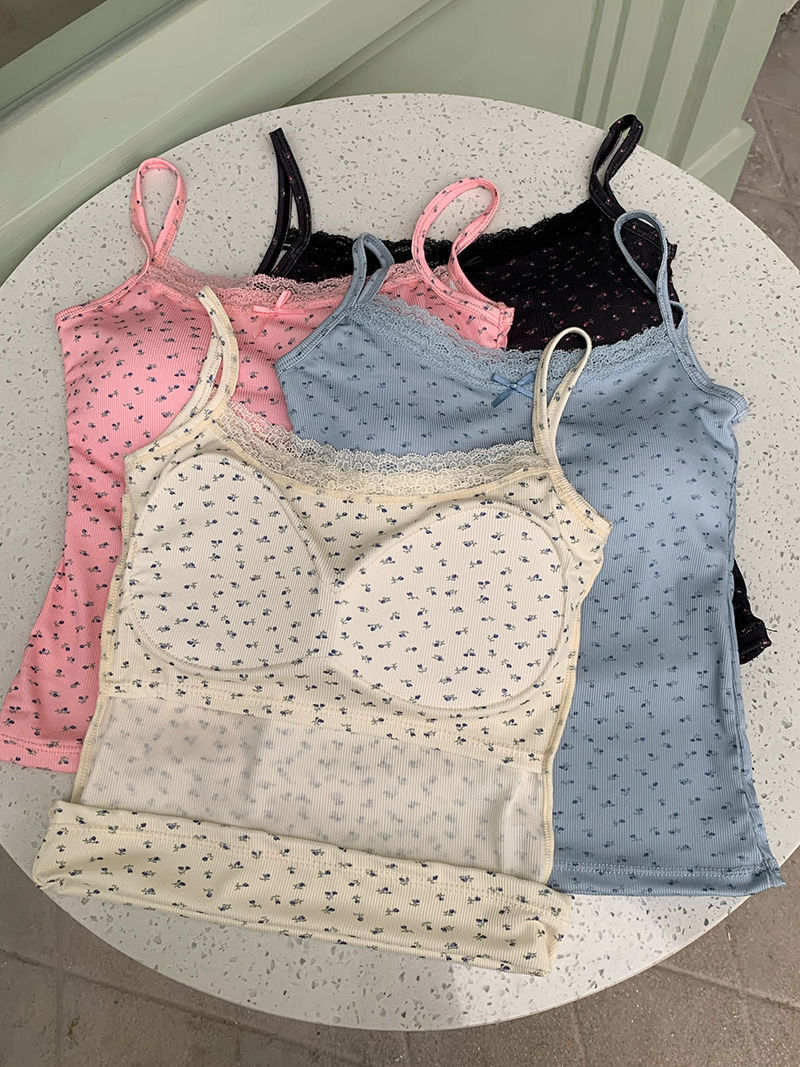 가슴 패드가있는 여성용 한국식 꽃 달콤한 캐미솔 순수한 섹시한 슬림 스티칭 슬리밍 바닥 탑스토어 가기