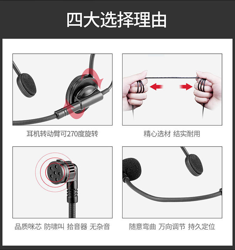 • Desheng 마이크 유니버설 블랙 헤드셋, 팔꿈치 L 형