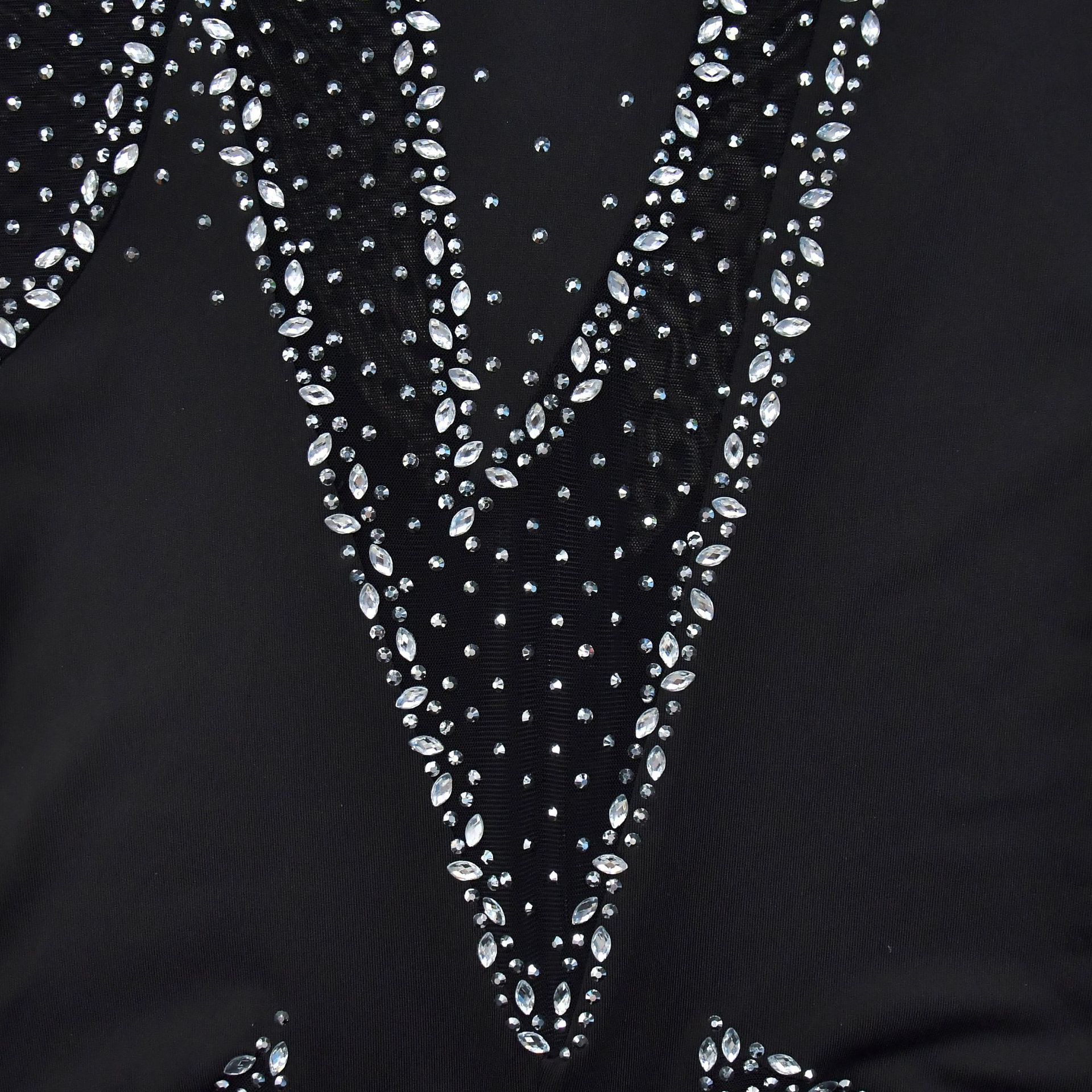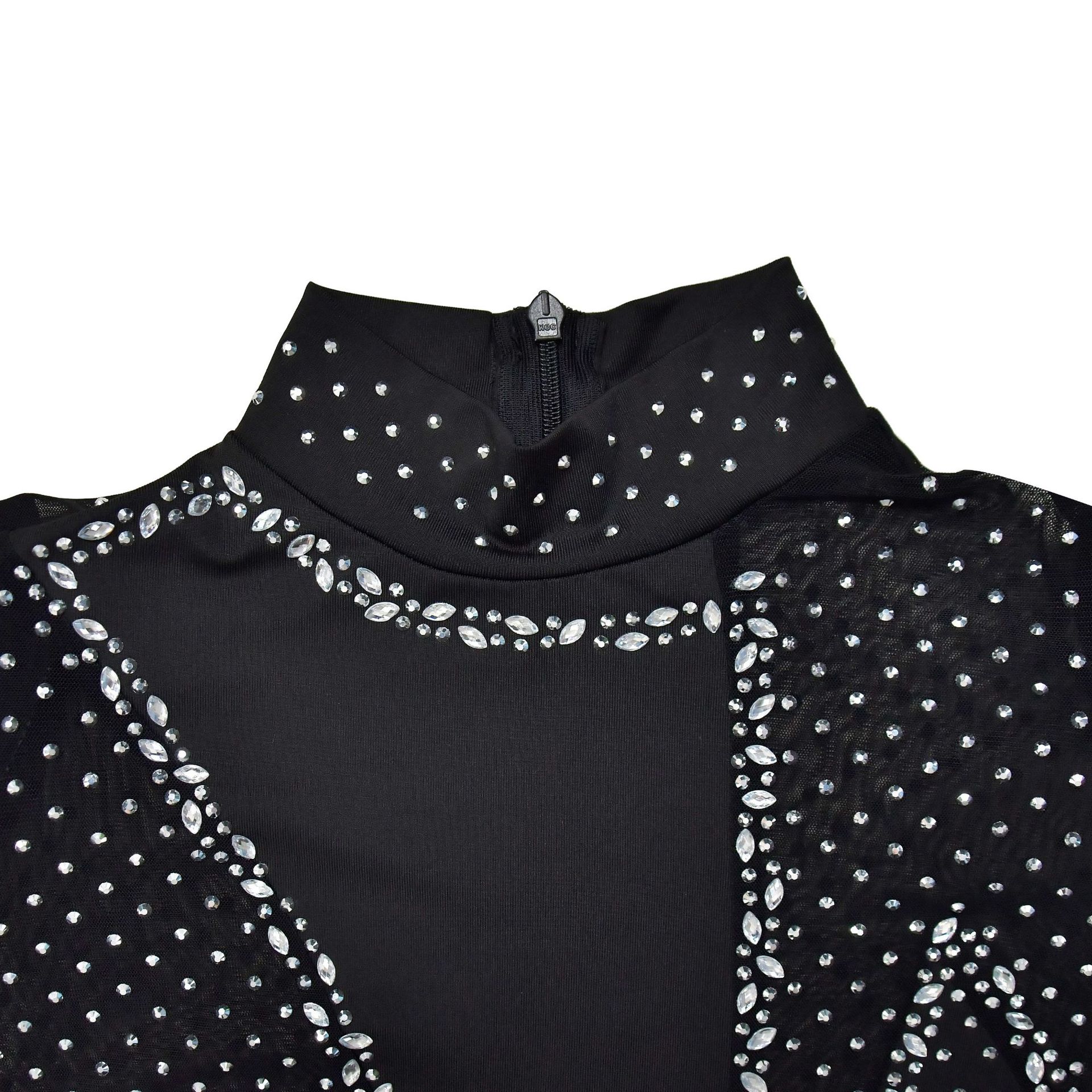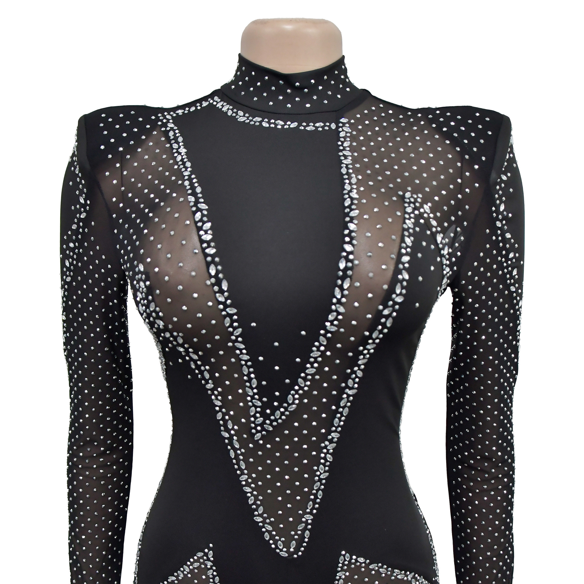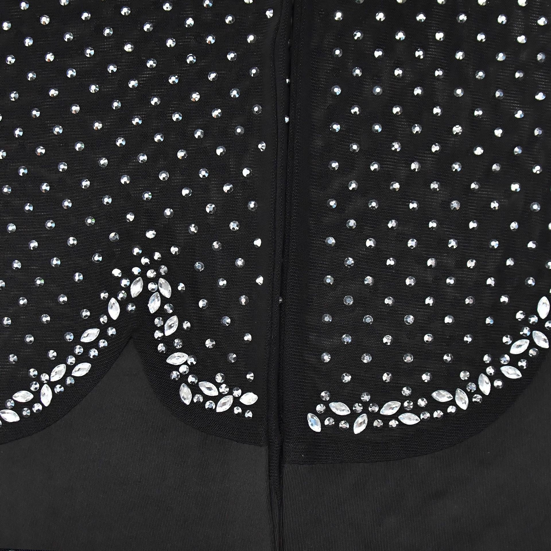 C6886 국경 간 AliExpress 아마존 유럽과 미국 패션 여성의 단색 메쉬 라인석 긴팔 바지 점프 수트스토어 가기