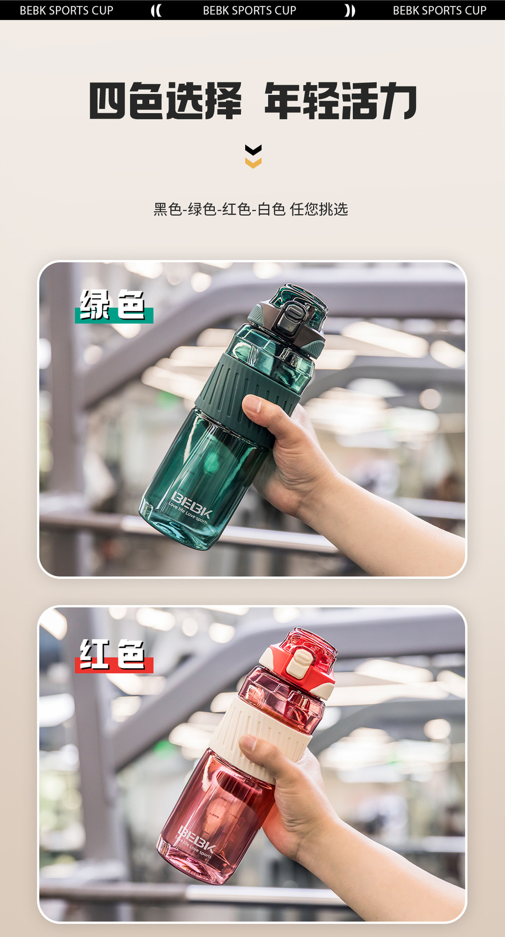 Beike 여름 물병 야외 휴대용 스포츠 물병 탄성 뚜껑 밀짚 컵 플라스틱 물 컵 휴대용 컵 플라스틱 컵