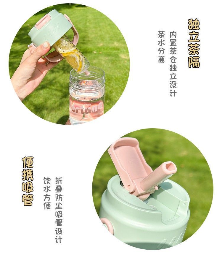 Ins 높은 가치 흡입 튜브 컵 학생 휴대용 컵 차 물 분리 향기 차 컵 대용량 차스토어 가기