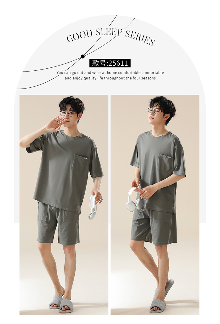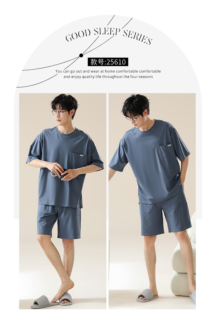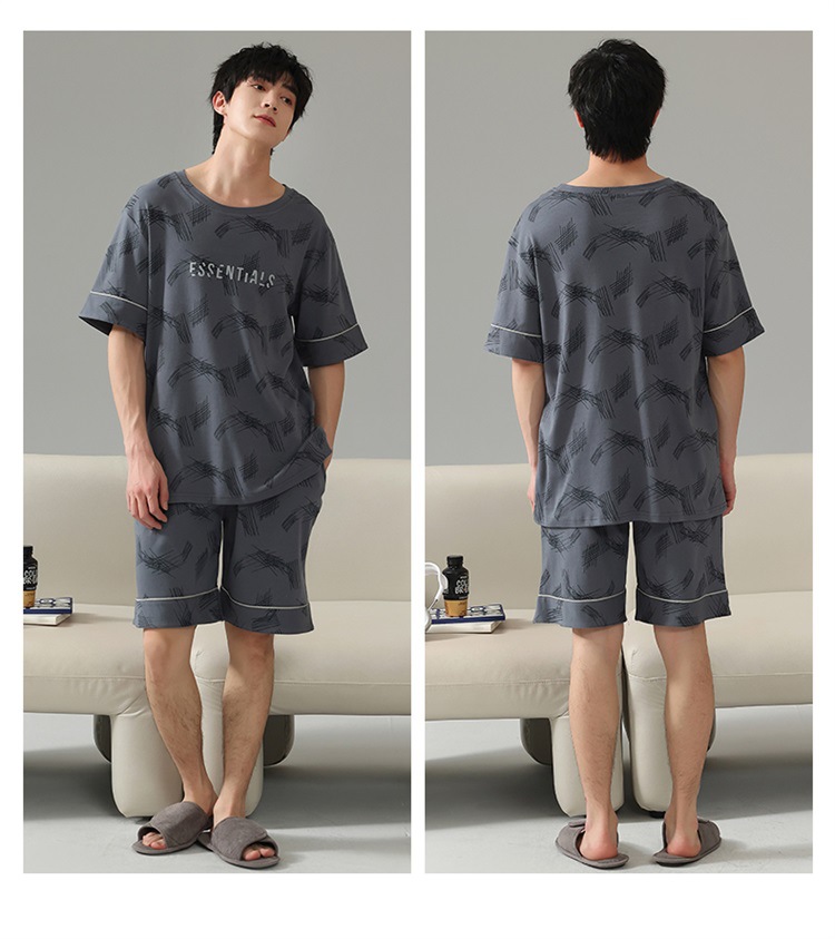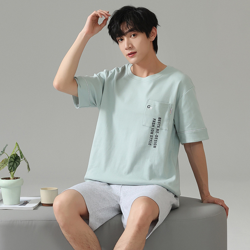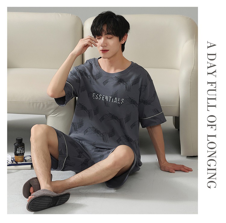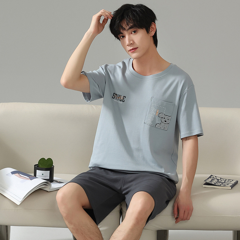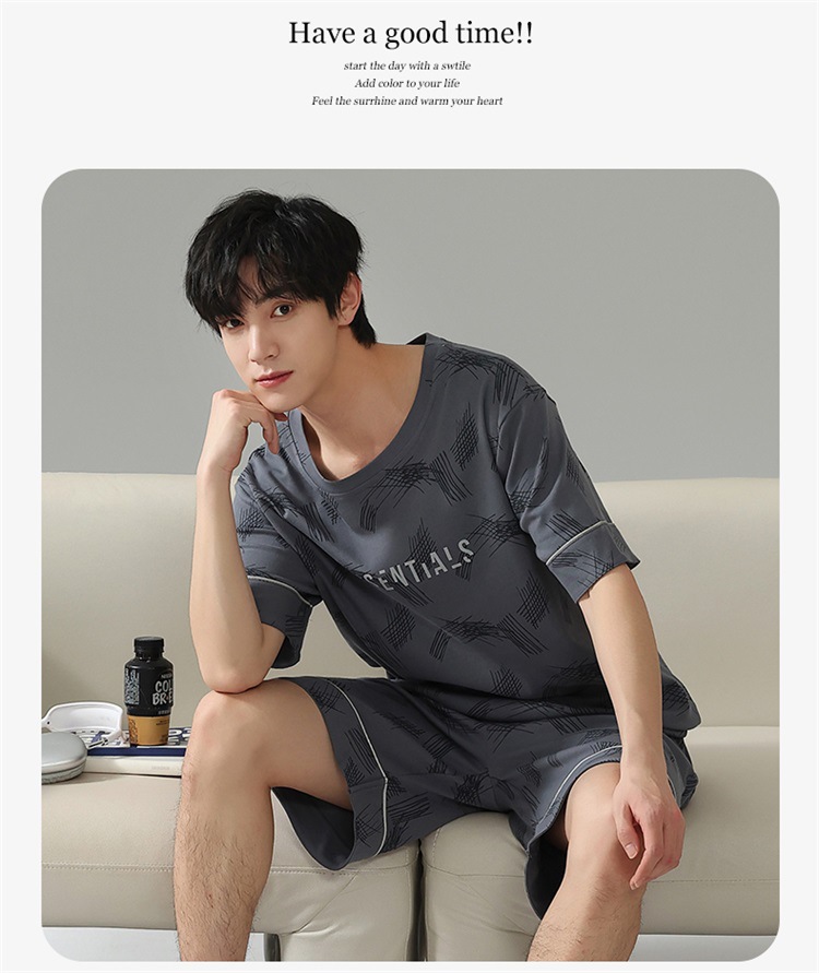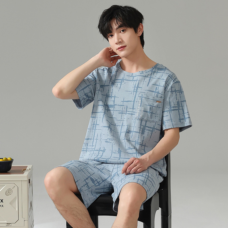 파자마 남성면 얇은 반팔 반바지는 봄, 여름 세트 청소년 남성 홈웨어 밖에서 입을 수 있습니다.스토어 가기