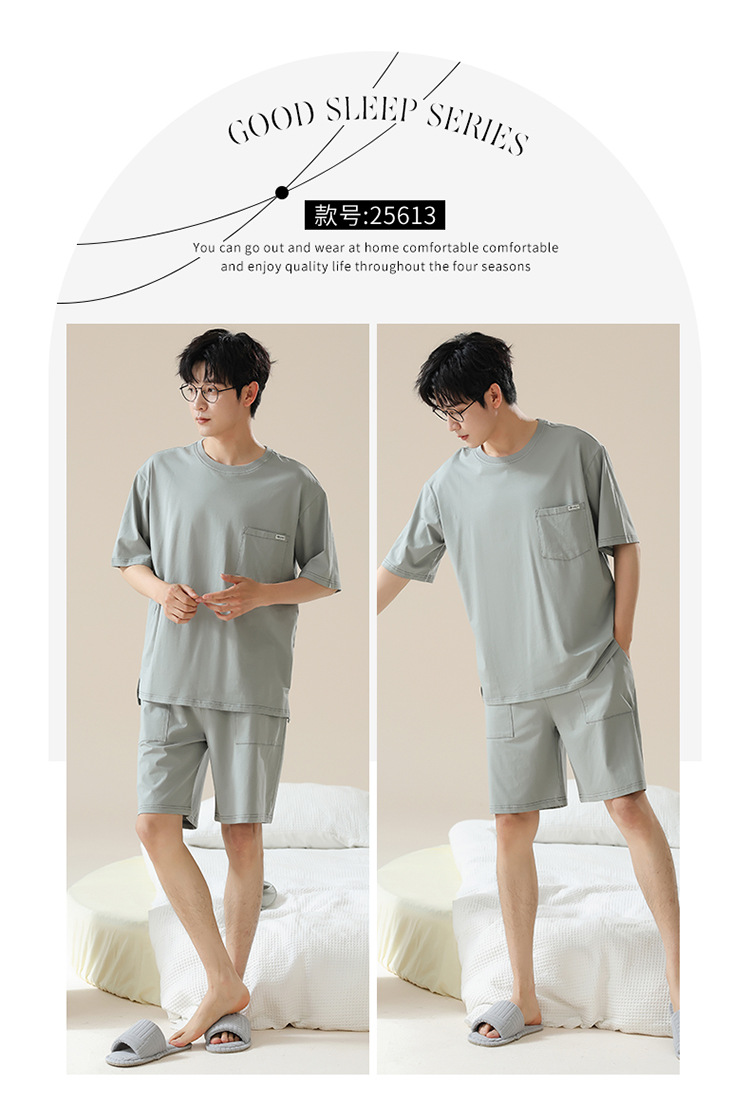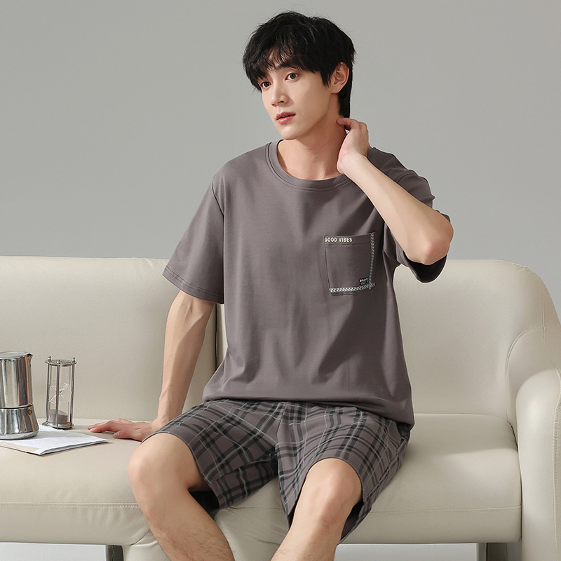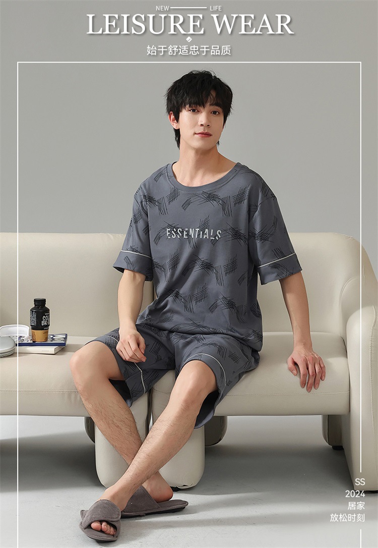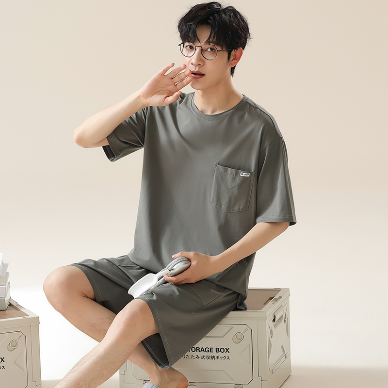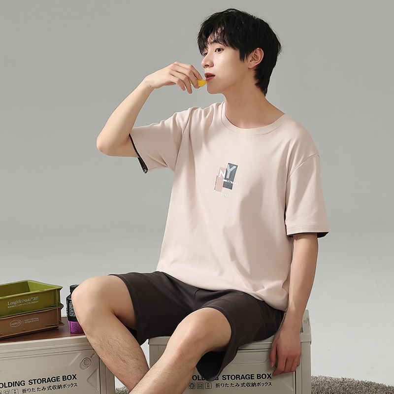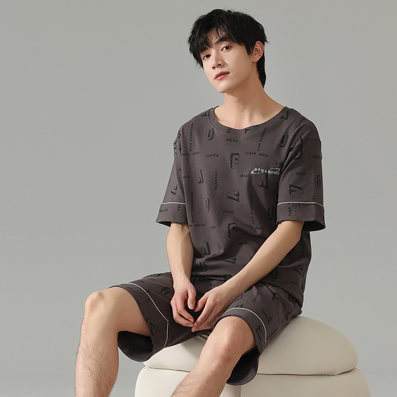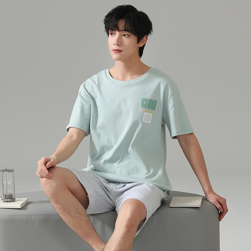 파자마 남성면 얇은 반팔 반바지는 봄, 여름 세트 청소년 남성 홈웨어 밖에서 입을 수 있습니다.스토어 가기