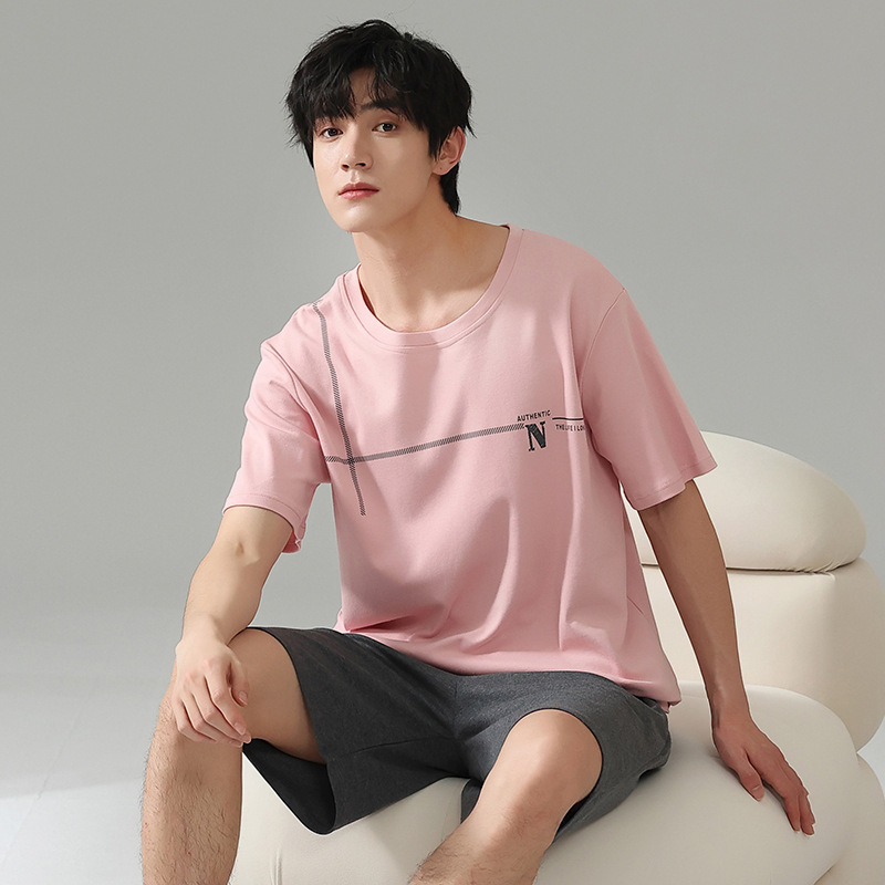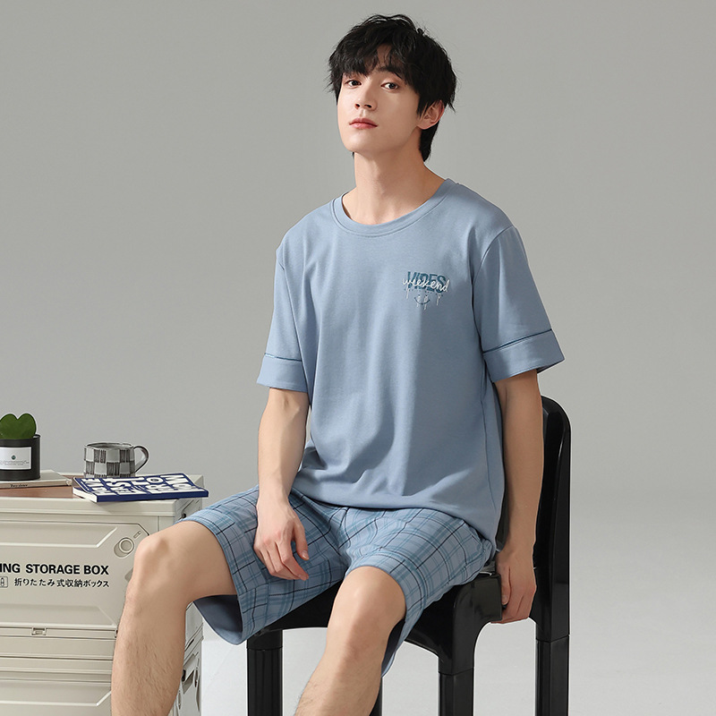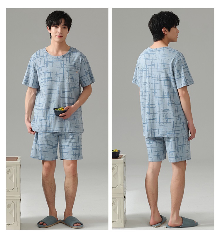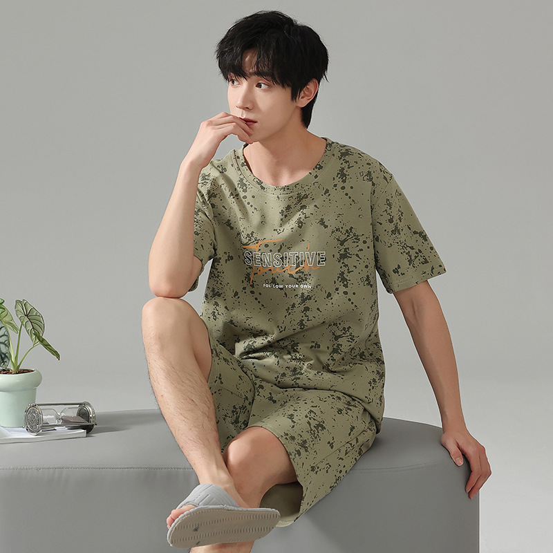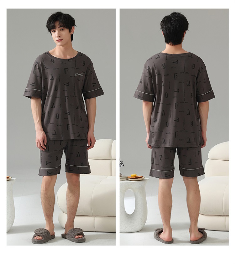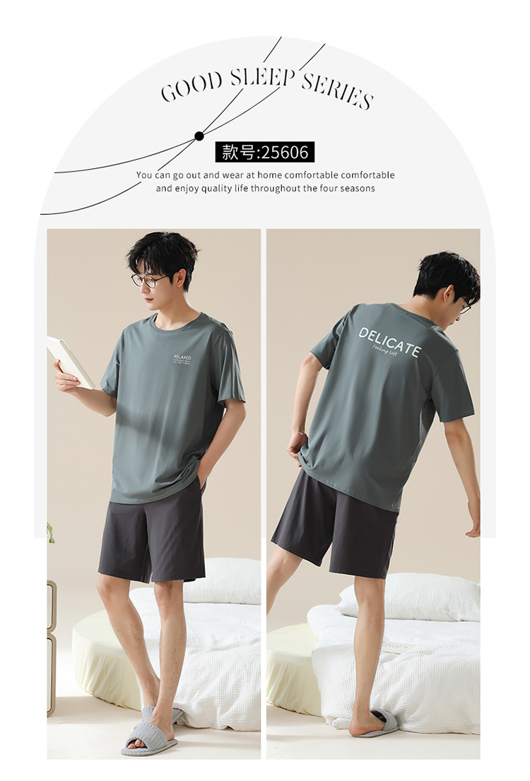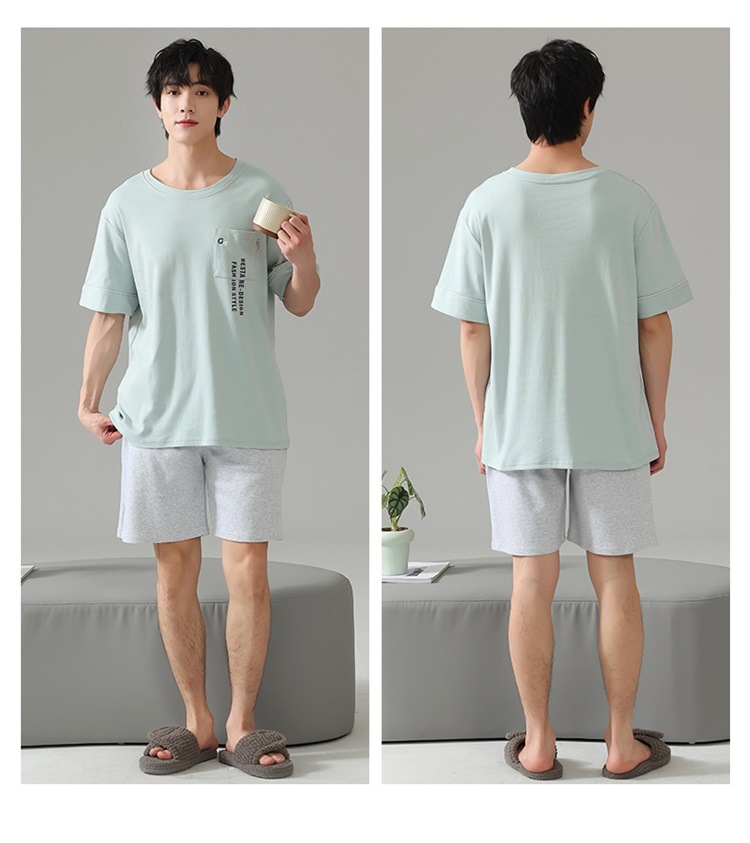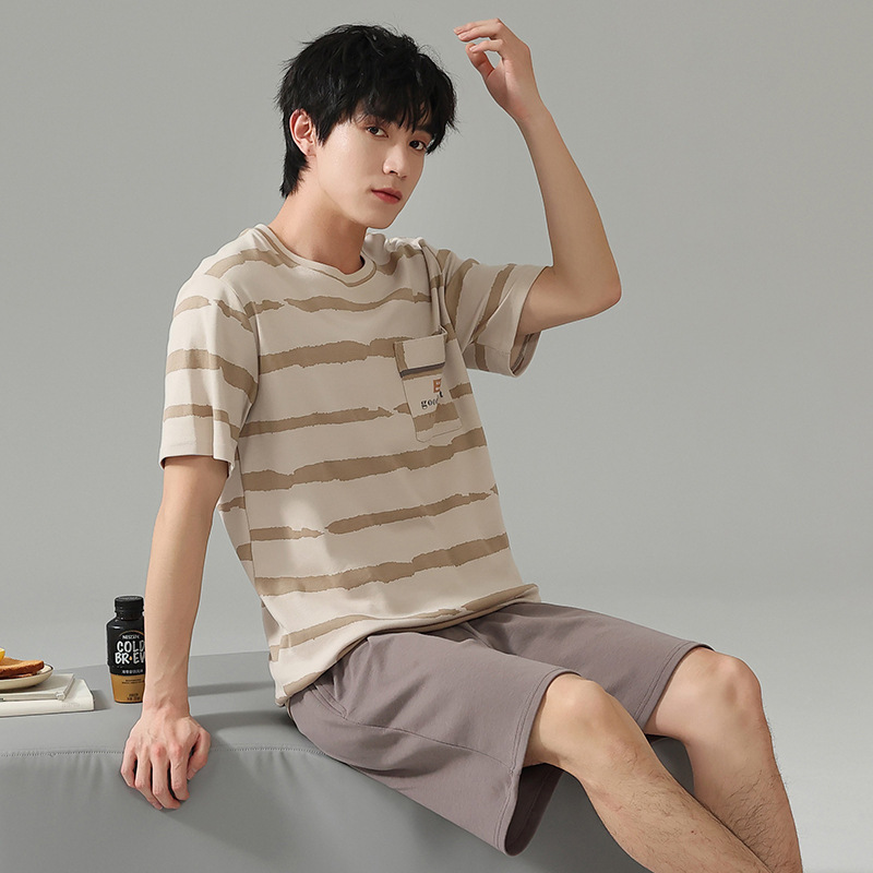 파자마 남성면 얇은 반팔 반바지는 봄, 여름 세트 청소년 남성 홈웨어 밖에서 입을 수 있습니다.스토어 가기