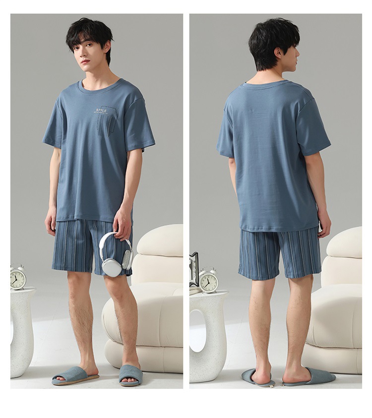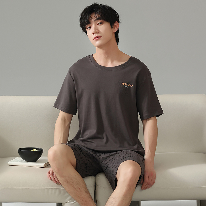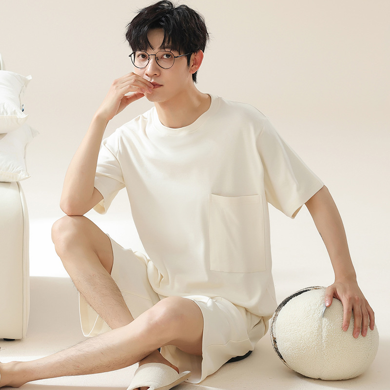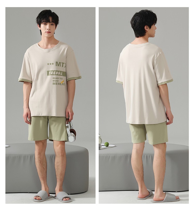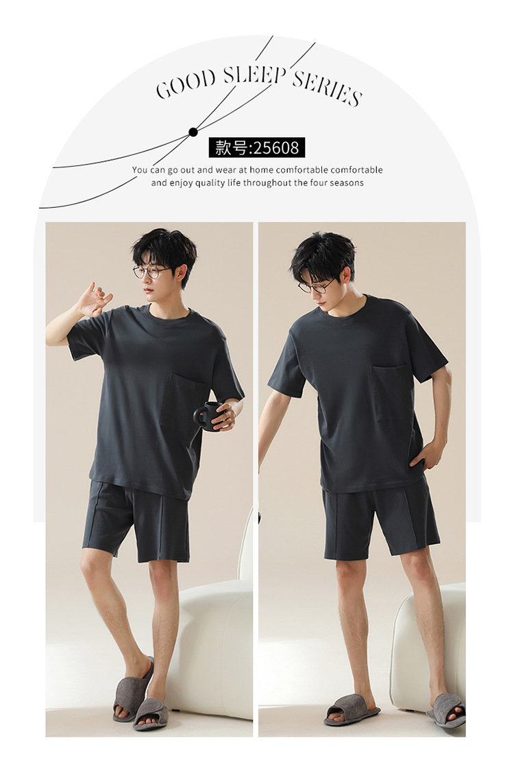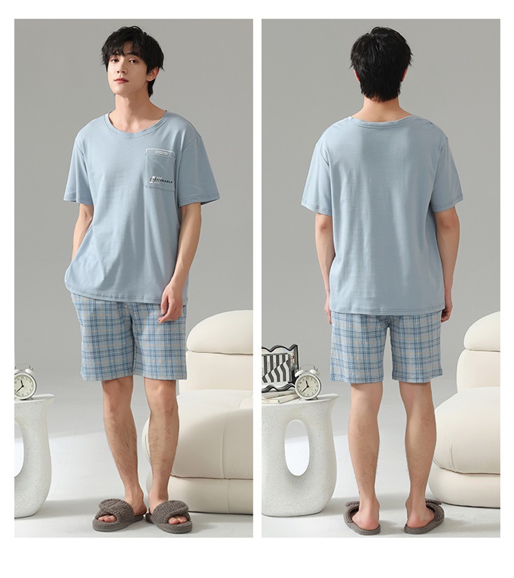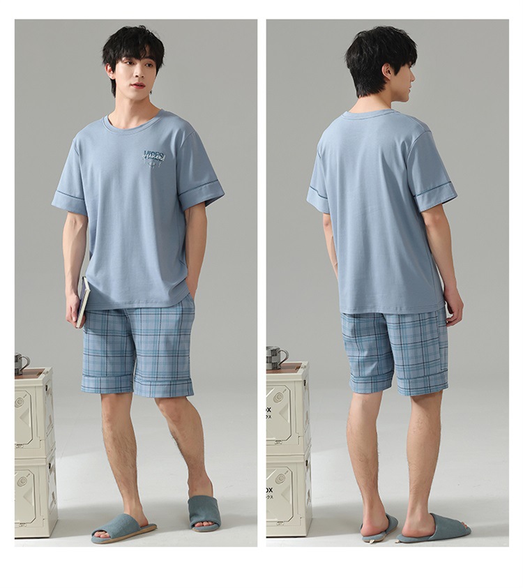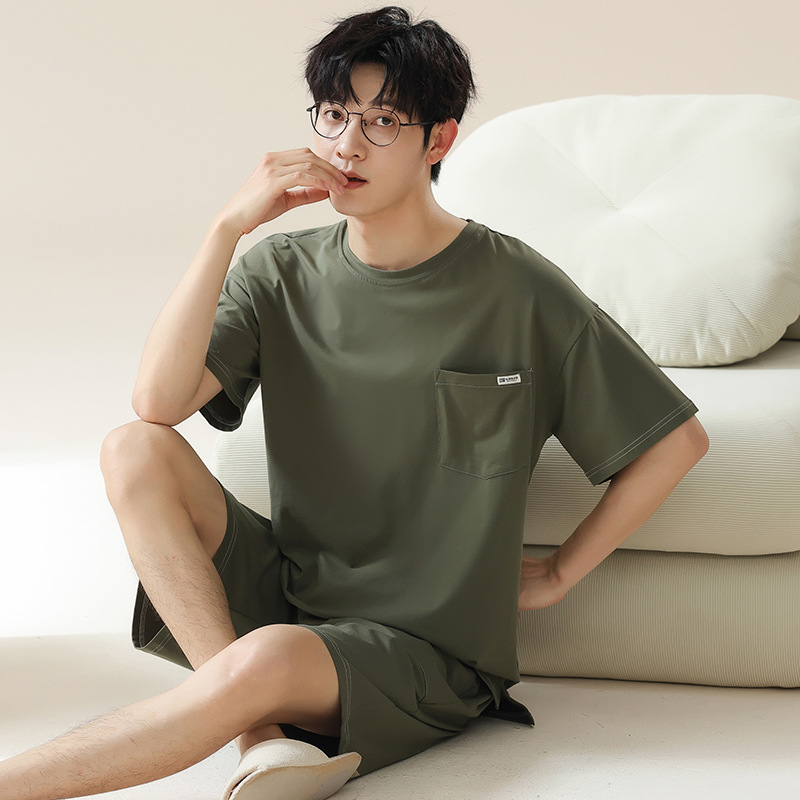 파자마 남성면 얇은 반팔 반바지는 봄, 여름 세트 청소년 남성 홈웨어 밖에서 입을 수 있습니다.스토어 가기