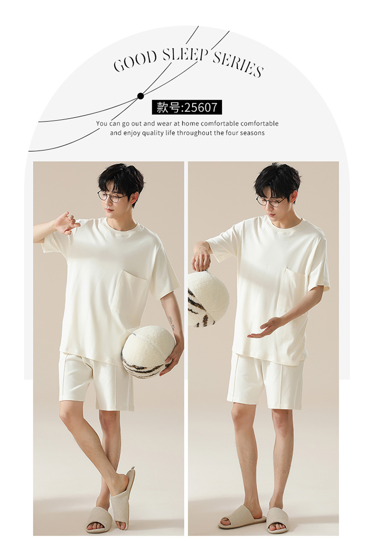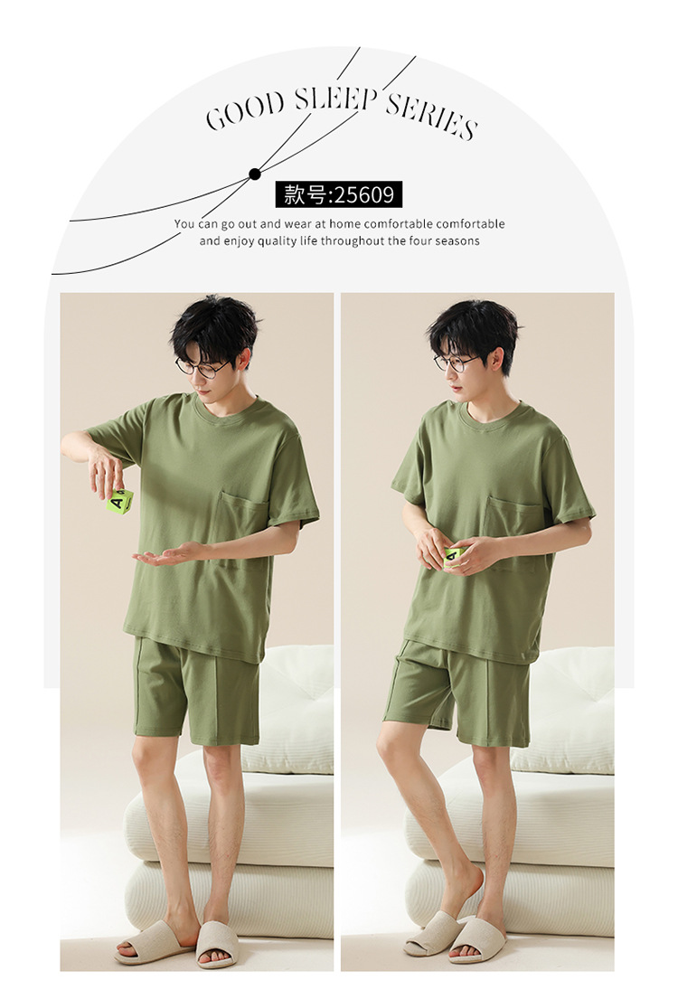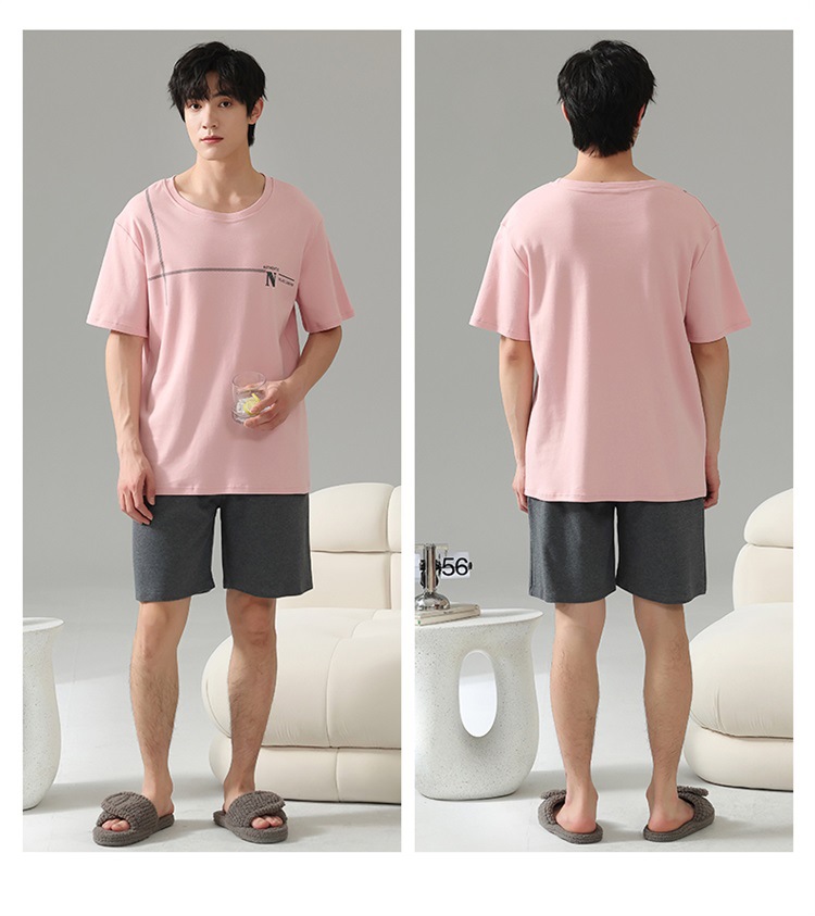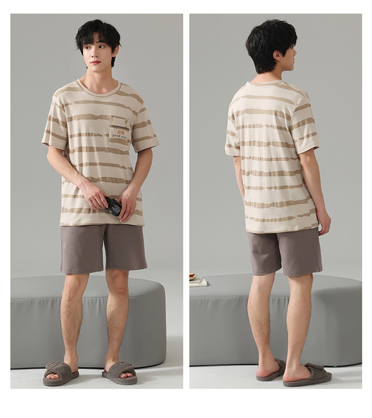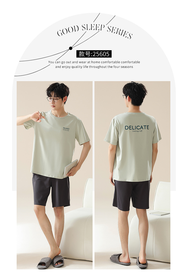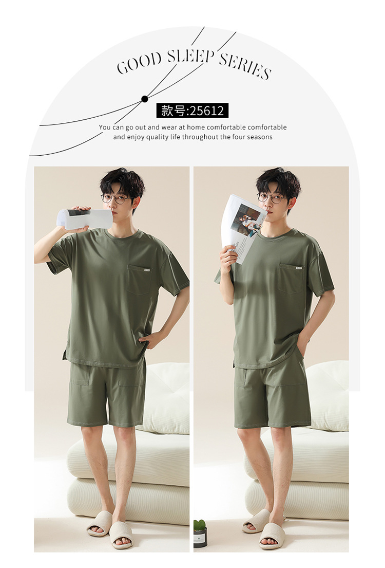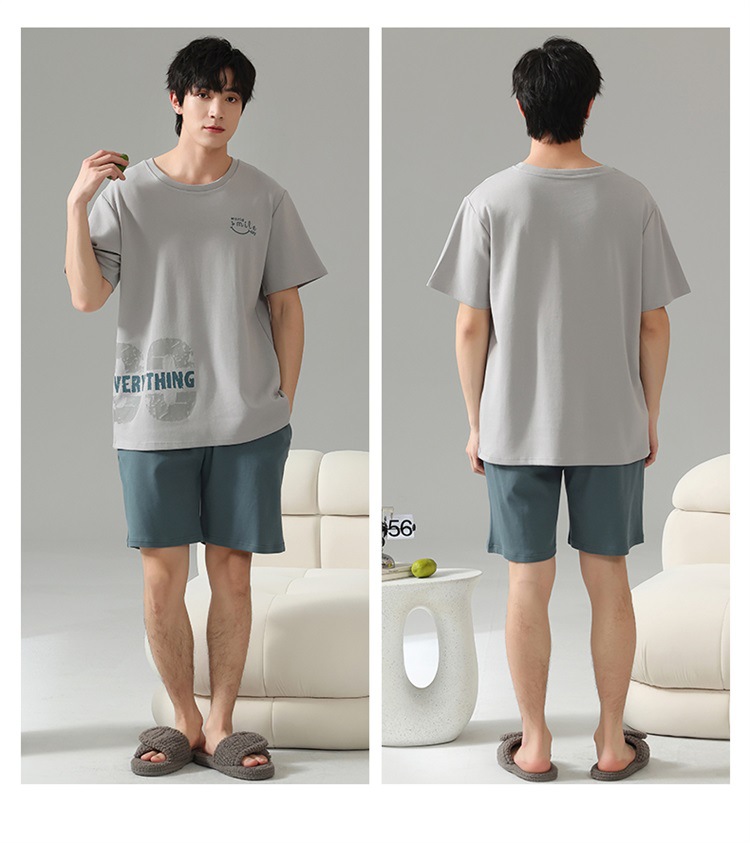 파자마 남성면 얇은 반팔 반바지는 봄, 여름 세트 청소년 남성 홈웨어 밖에서 입을 수 있습니다.스토어 가기