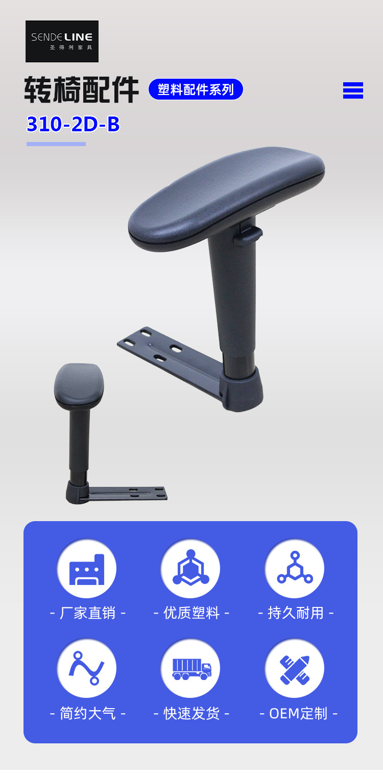 사무실 의자 액세서리 2D 나일론 플라스틱 하드웨어 전면 및 후면 조정 가능한 컴퓨터 의자 회전 의자 팔걸이스토어 가기