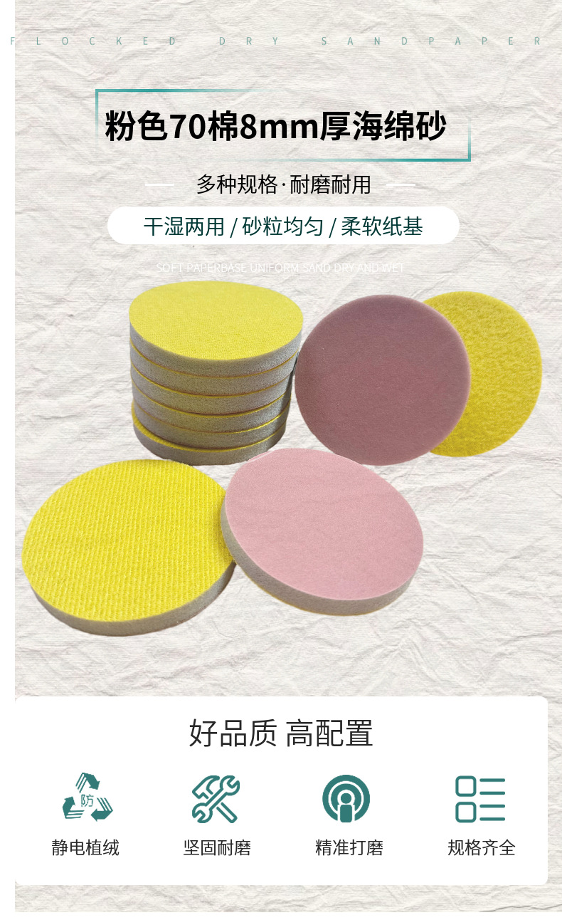 2 인치 3 인치 70 면 8mm 두께의 핑크 스폰지 모래 백 벨벳 스폰지 사포 휴대 전화 전자 담배 쉘 연마 및 연마